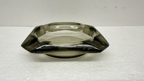 This vintage ashtray is a must-have for any collector. Made from clear light gray smokey glass, it exudes a timeless elegance that is hard to come by. Measuring 3.5 inches in diameter, it is the perfect size for use or display. The intricate details of the design are sure to catch the eye, making it a true conversation piece. Whether you're a seasoned smoker or just looking for a unique addition to your collection, this ashtray is sure to impress.