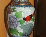 - Vintage Cloisonne 8" Vase White Green Red Purple Enamel Stone Brass Bird Flowers
