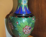 - Vintage Cloisonne 9" Vase Brass/ Copper Green Floral Leaf Enamel DAMAGED Antique