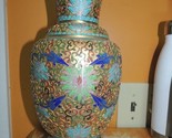 - Vintage Cloisonne / Champleve 12" Vase Brass / Copper blue green pink Enamel