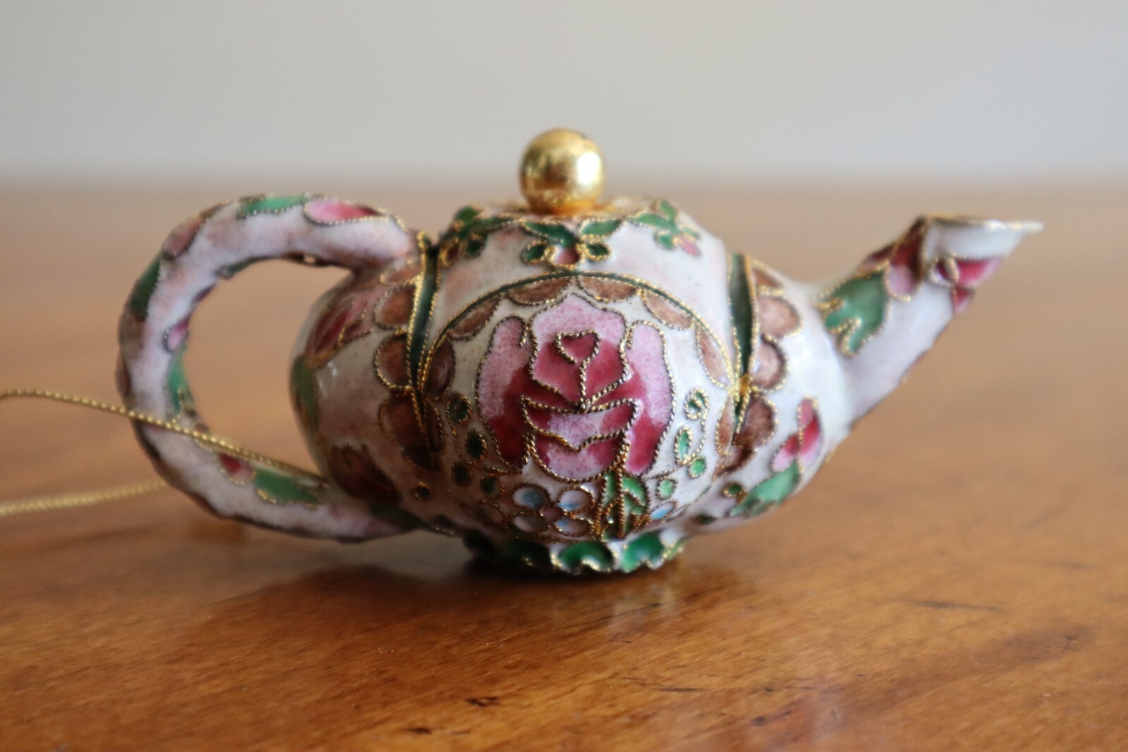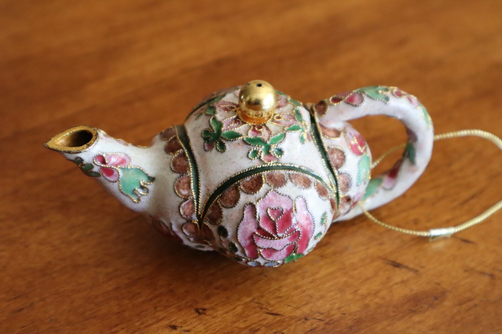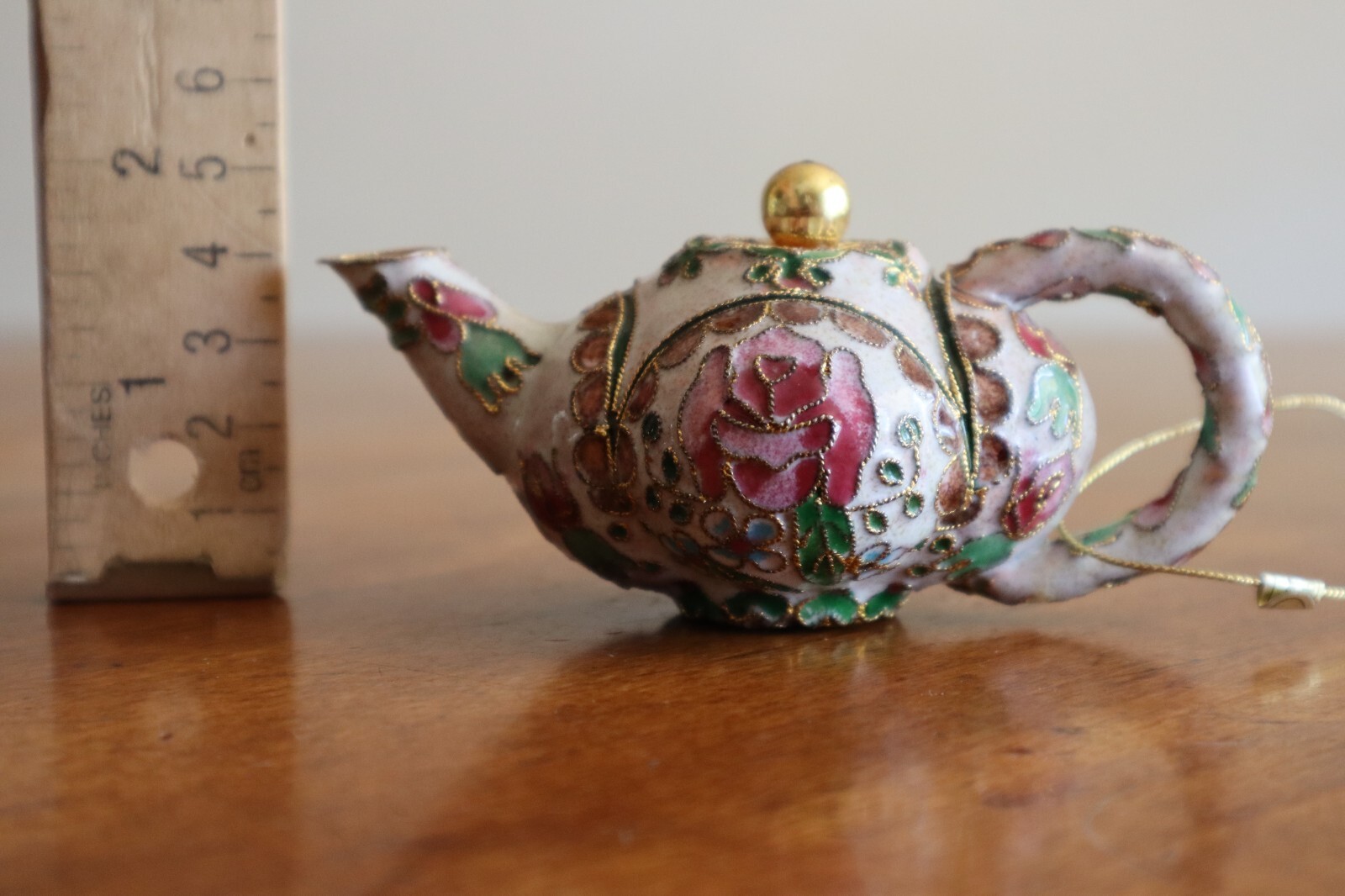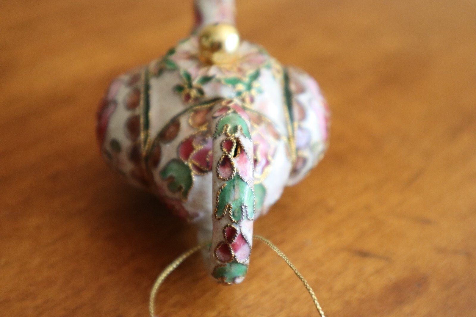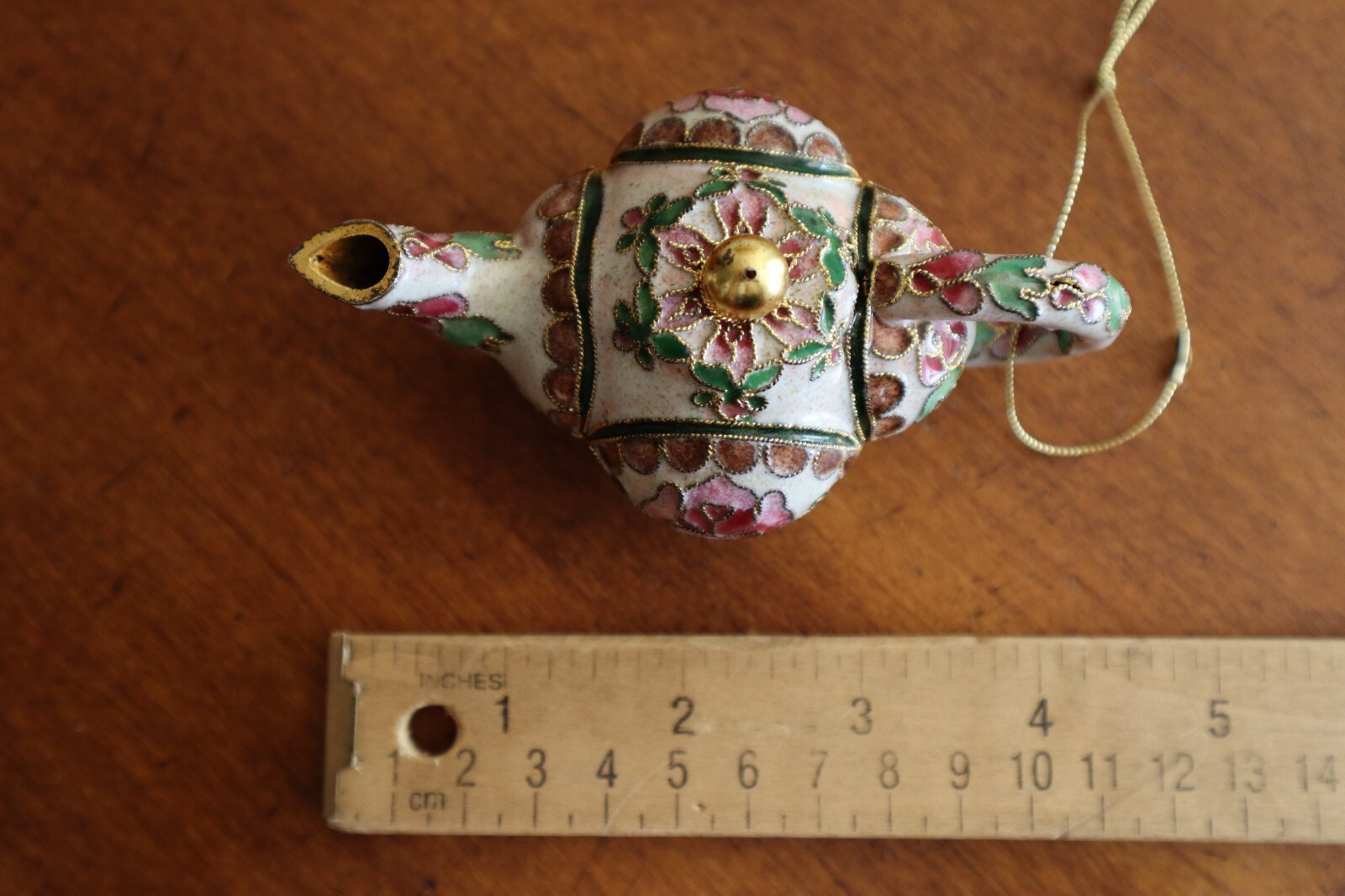 - Vintage Cloisonne Minature Teapot Coffee Kettle Christmas Floral Ornament Flower