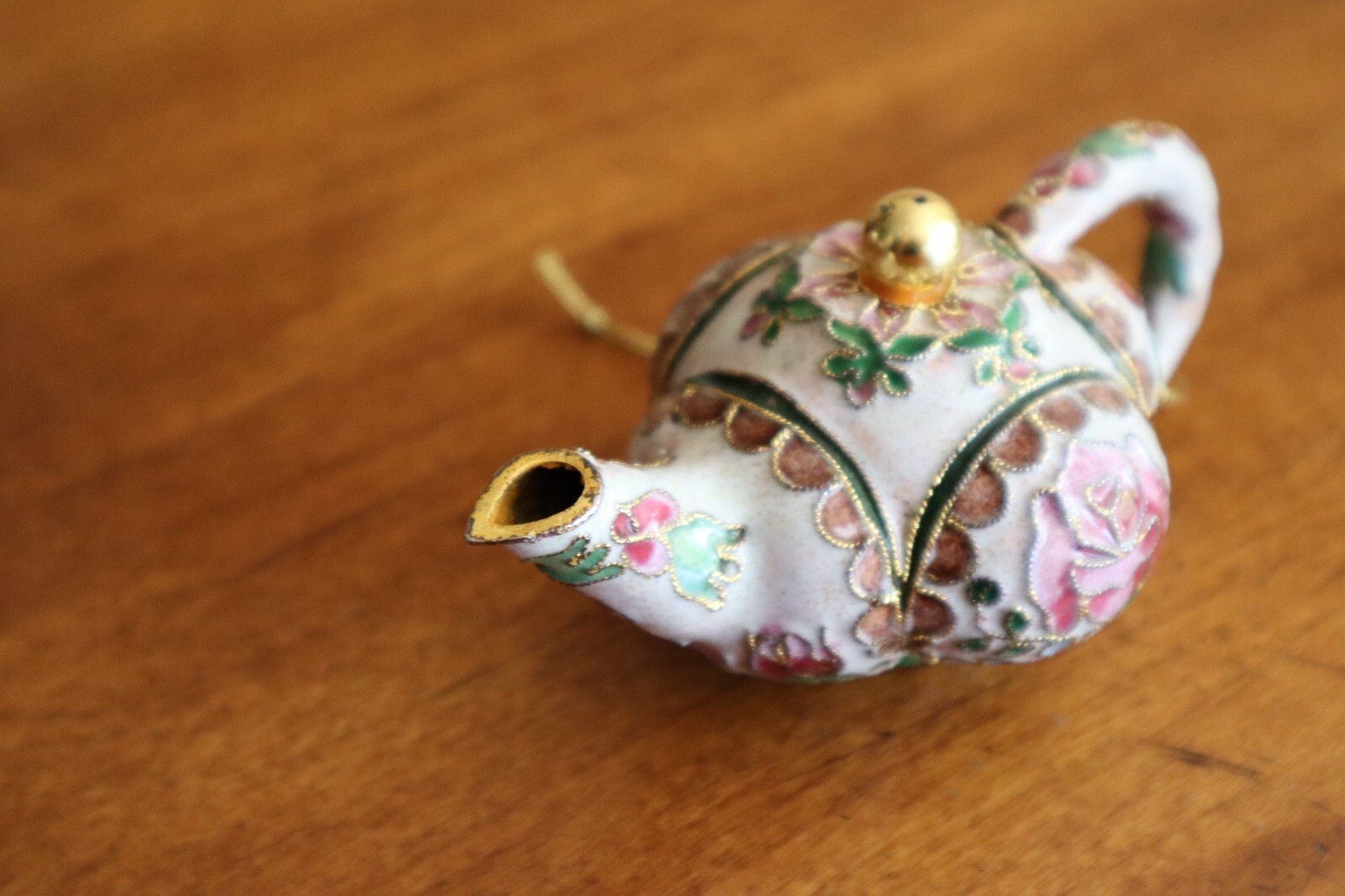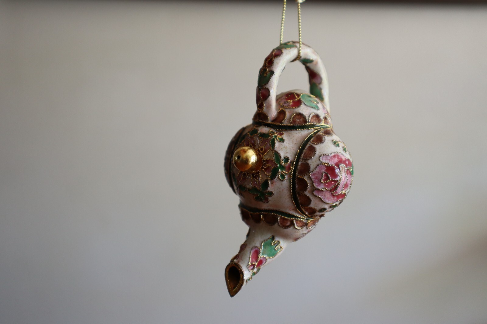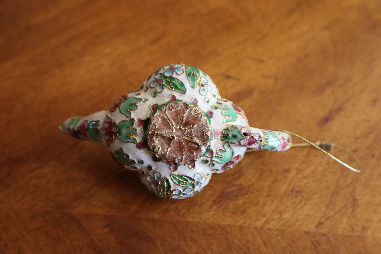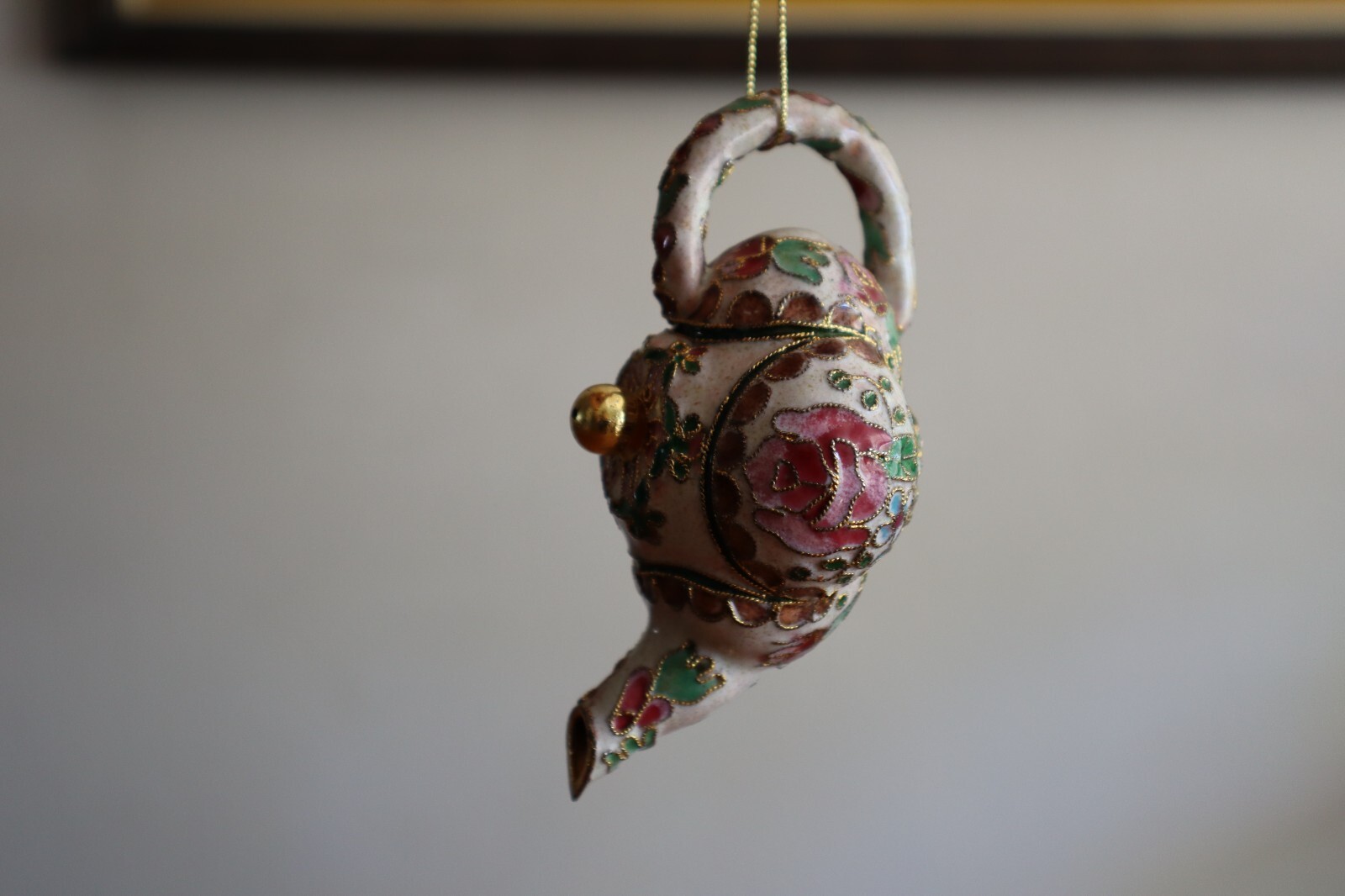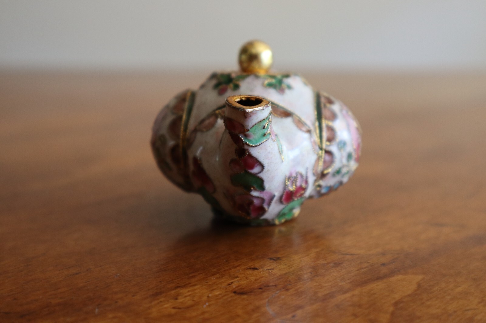 - Vintage Cloisonne Minature Teapot Coffee Kettle Christmas Floral Ornament Flower