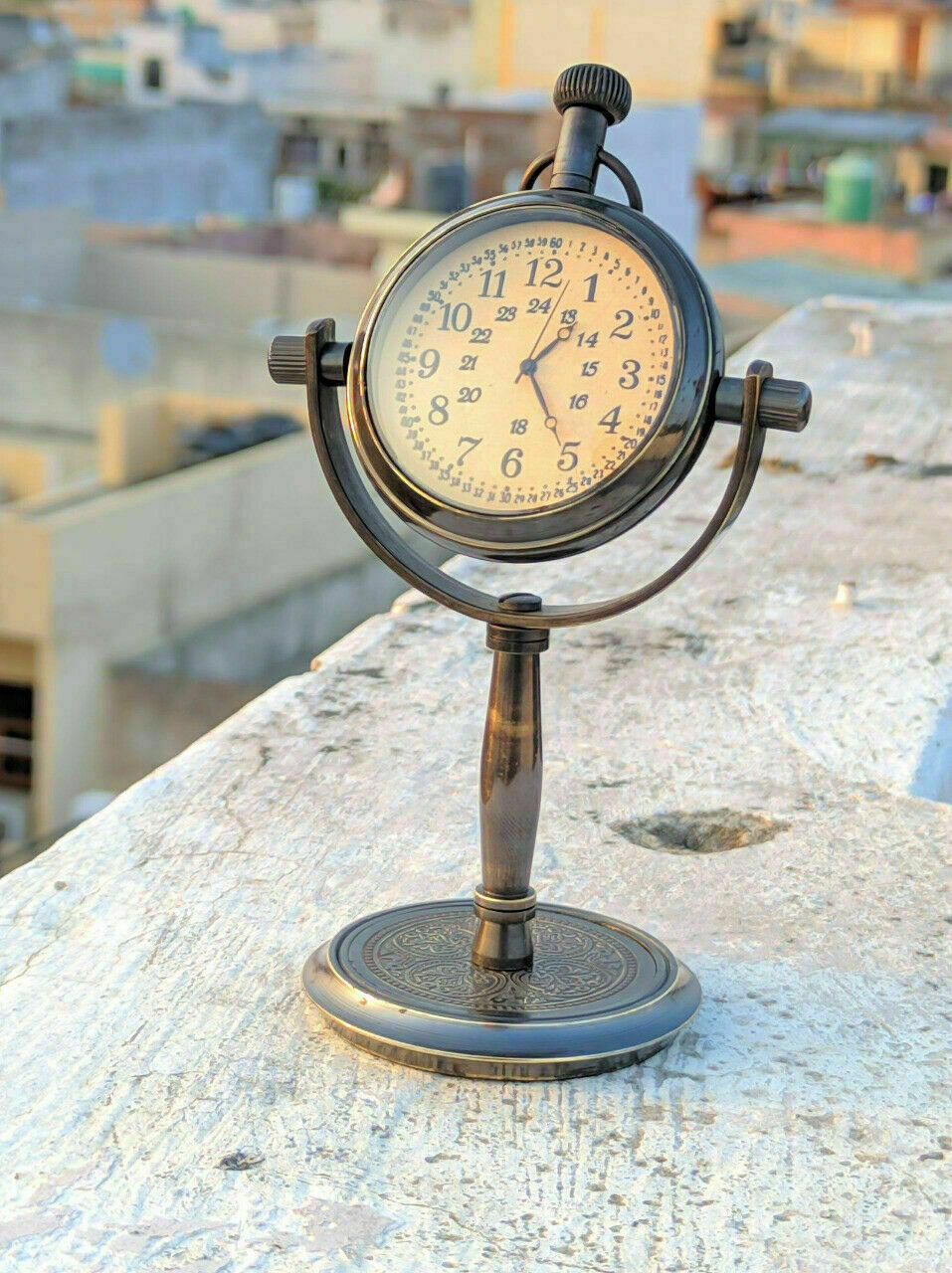 - Vintage Collectible Maritime 5" Antique Brass Desk Clock Nautical Pocket Watch