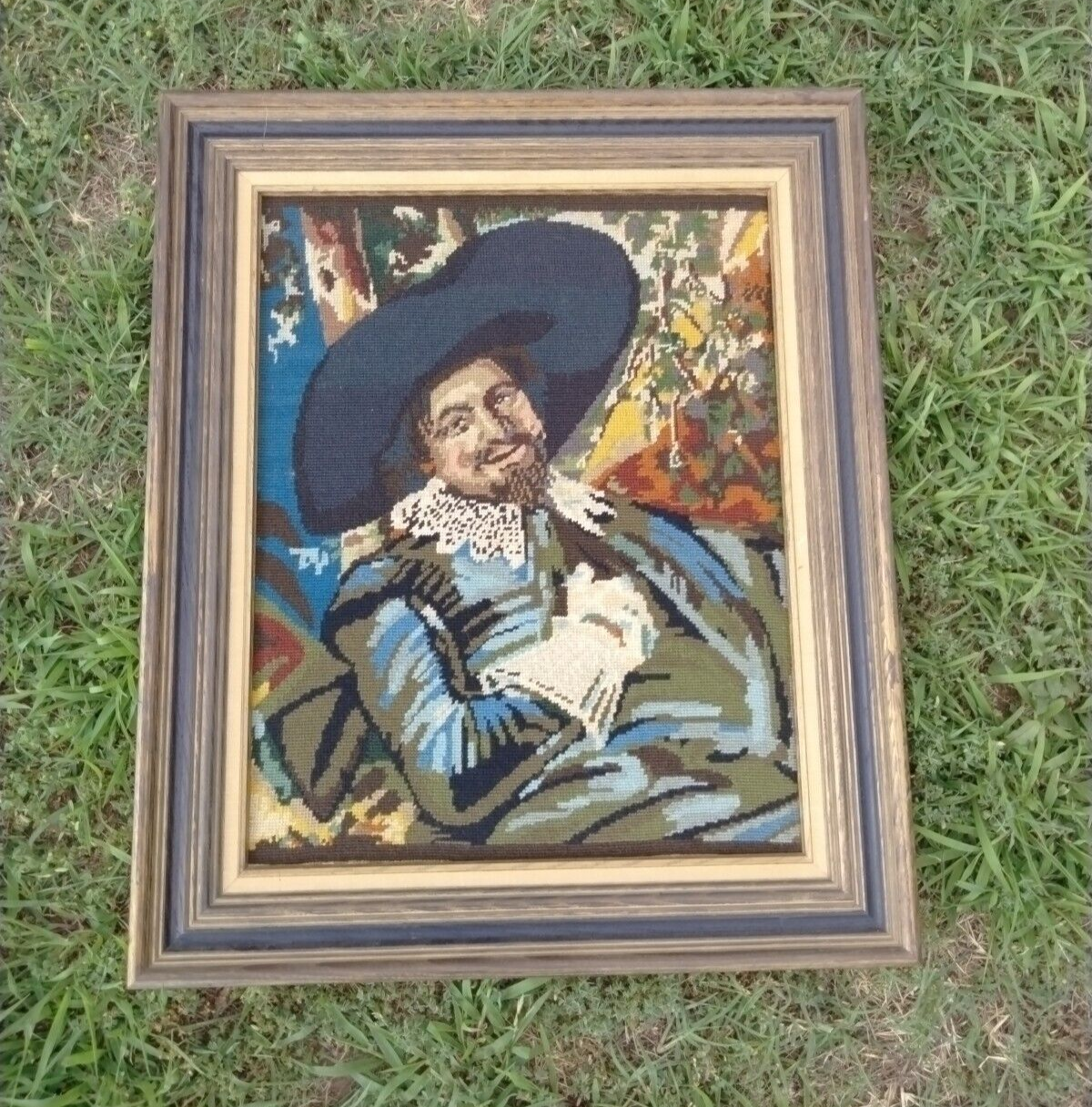 Vintage Conquistador Fine Art Embroidery Tapestry Needlepoint Framed Wall Art