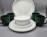 - Vintage Corelle Rosemarie dinnerware 16-pc With Green Mugs 1990's