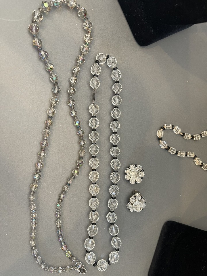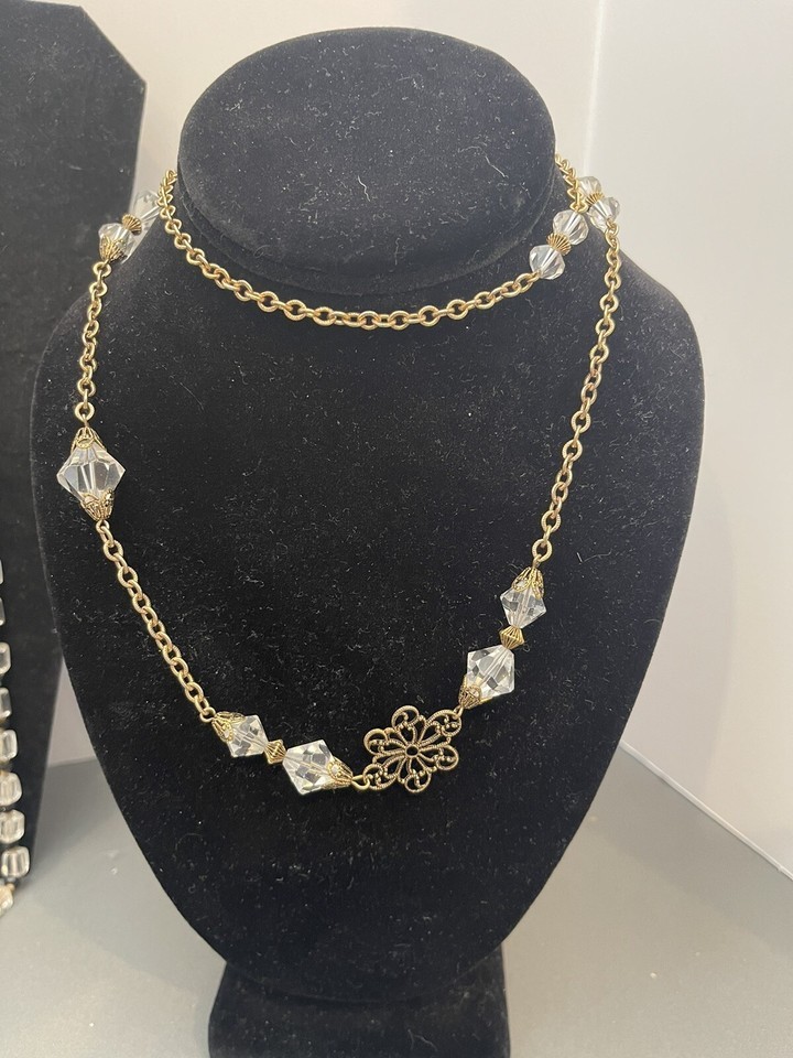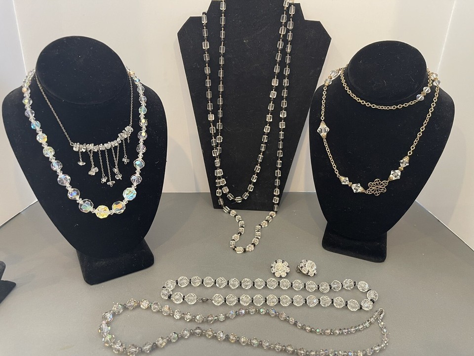 - Vintage Costume Jewelry Lot Rhinestones 7 pieces Necklaces and Earrings