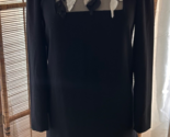 - Vintage Courreges Paris black silk "leaf" sheath dress M