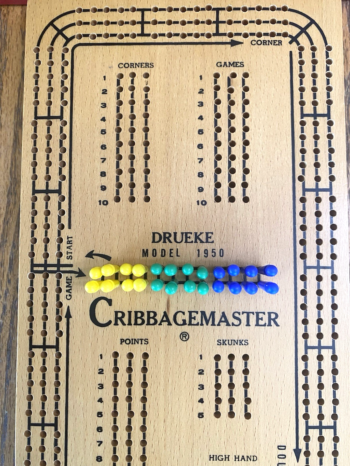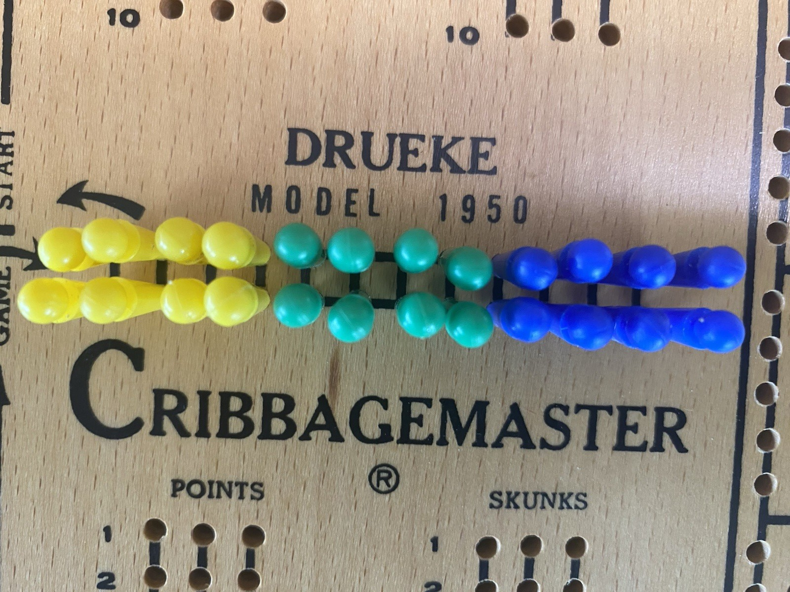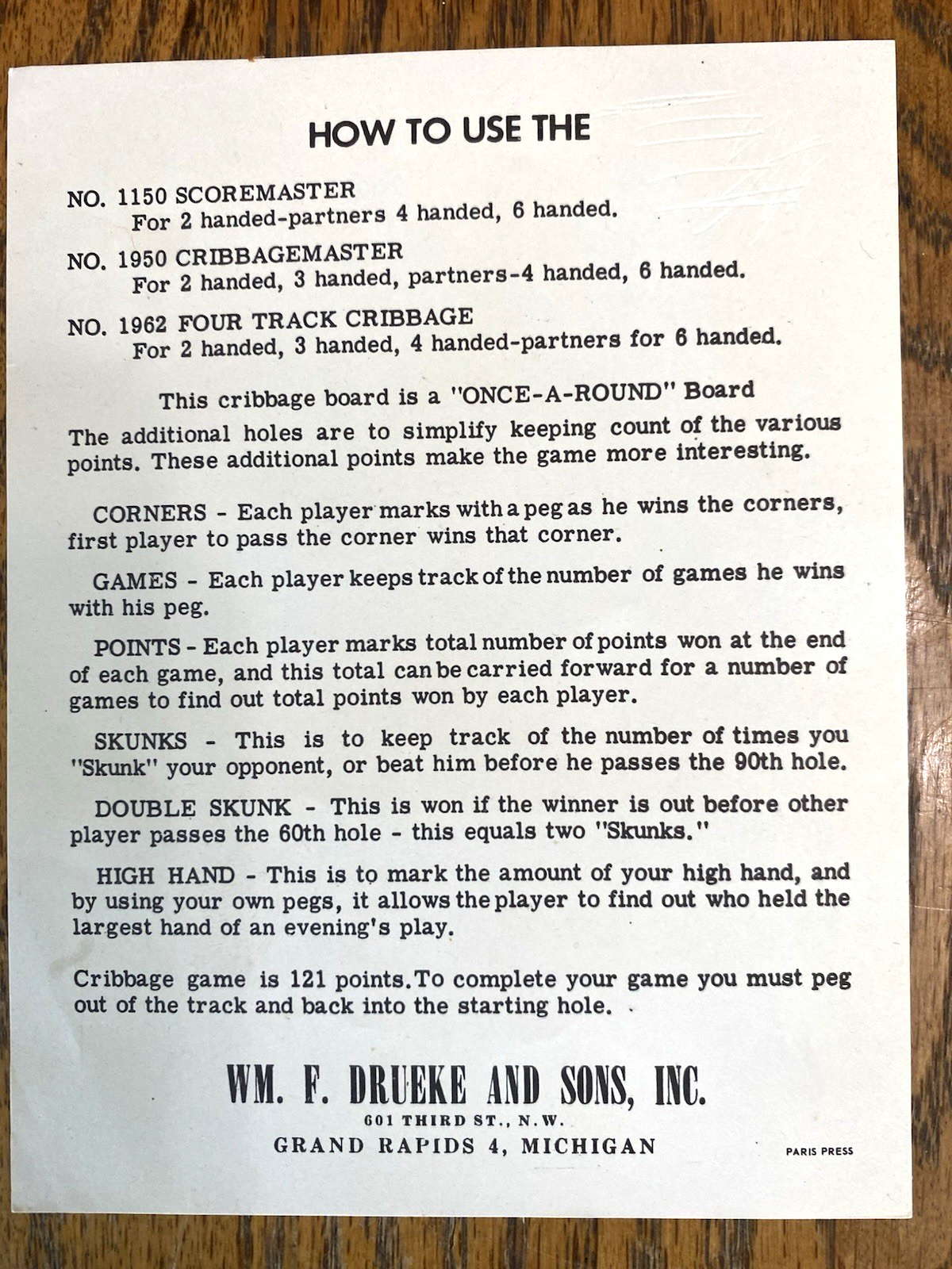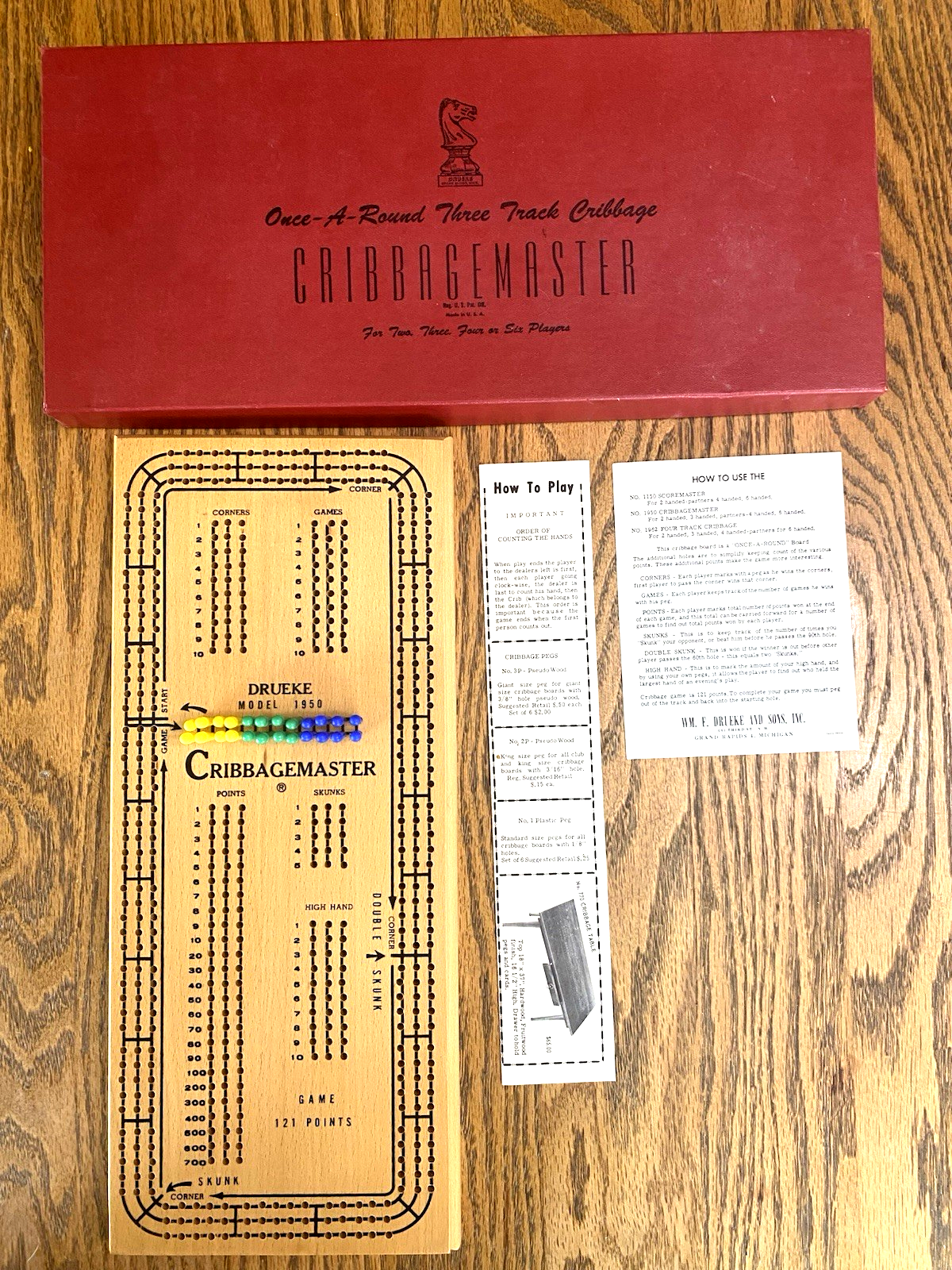 Vintage Cribbagemaster Drueke Model 1950 Once-A-Round Three Track Cribbage Board