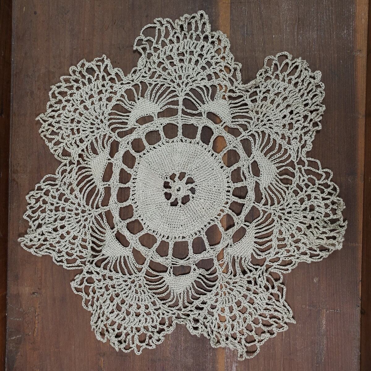 - Vintage Crochet Doily 14 Inch Round Silver Gray