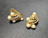 Primary image for Vintage Crown Trifari Gold Tone Faux Pearl Clip On Earrings Signed Elegant