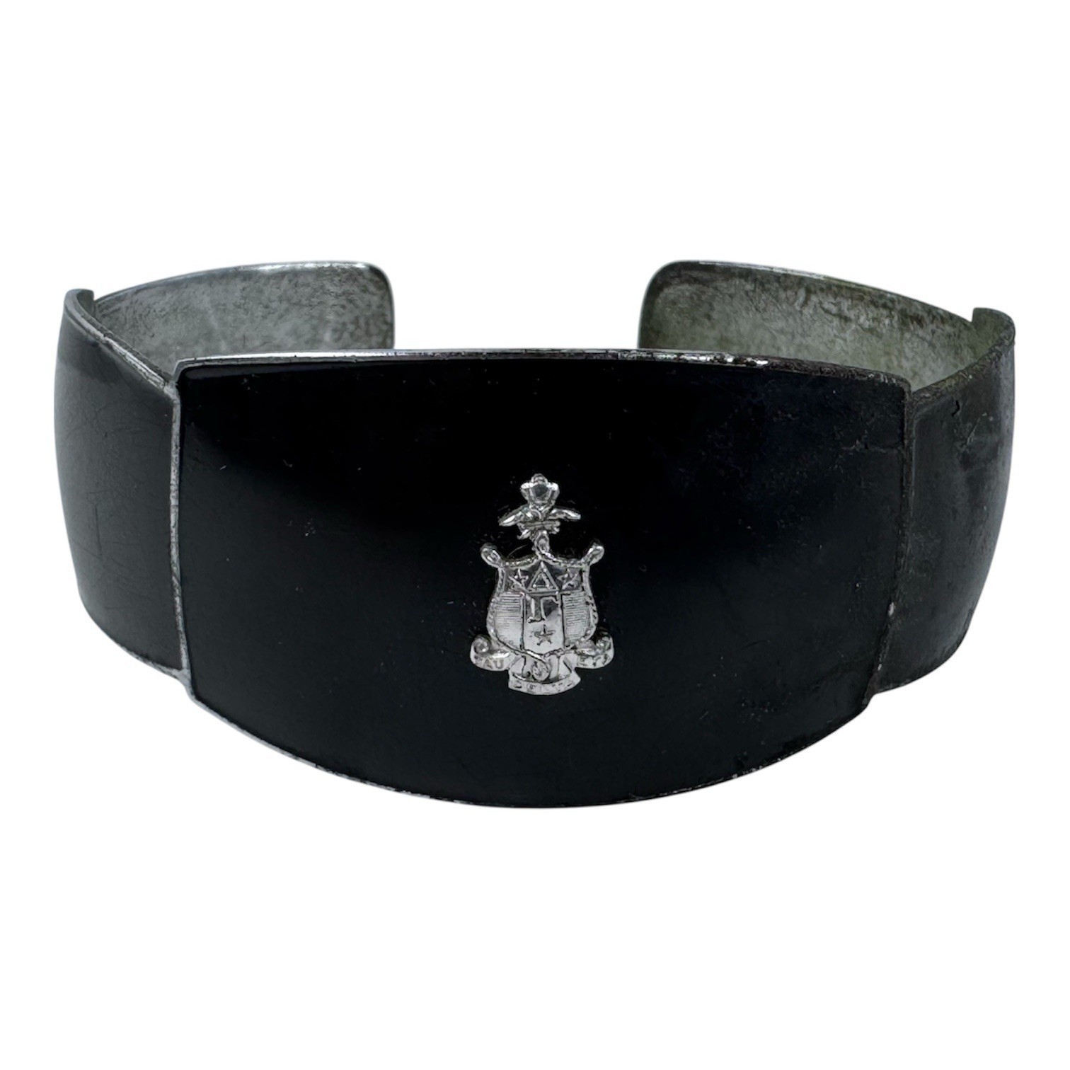 The Vintage Delta Gamma Sorority Tau Delta Eta Crest Sterling Silver Cuff Bracelet is a unique collectible item that showcases the historical significance of the Delta Gamma sorority.