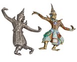 - Vintage Deux Argent Sterling Siam Danseurs Broches, Un Décoré Avec Émail