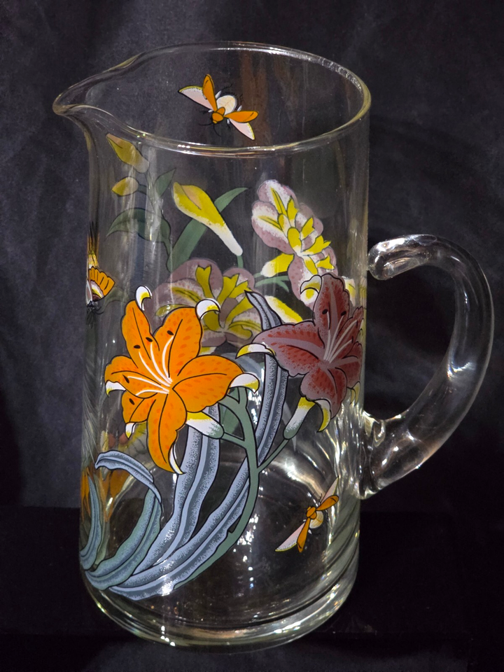 Nice Lily's Butterflies Bees pitcher by Dorothy Thorpe in excellent condition. Great color and clarity,