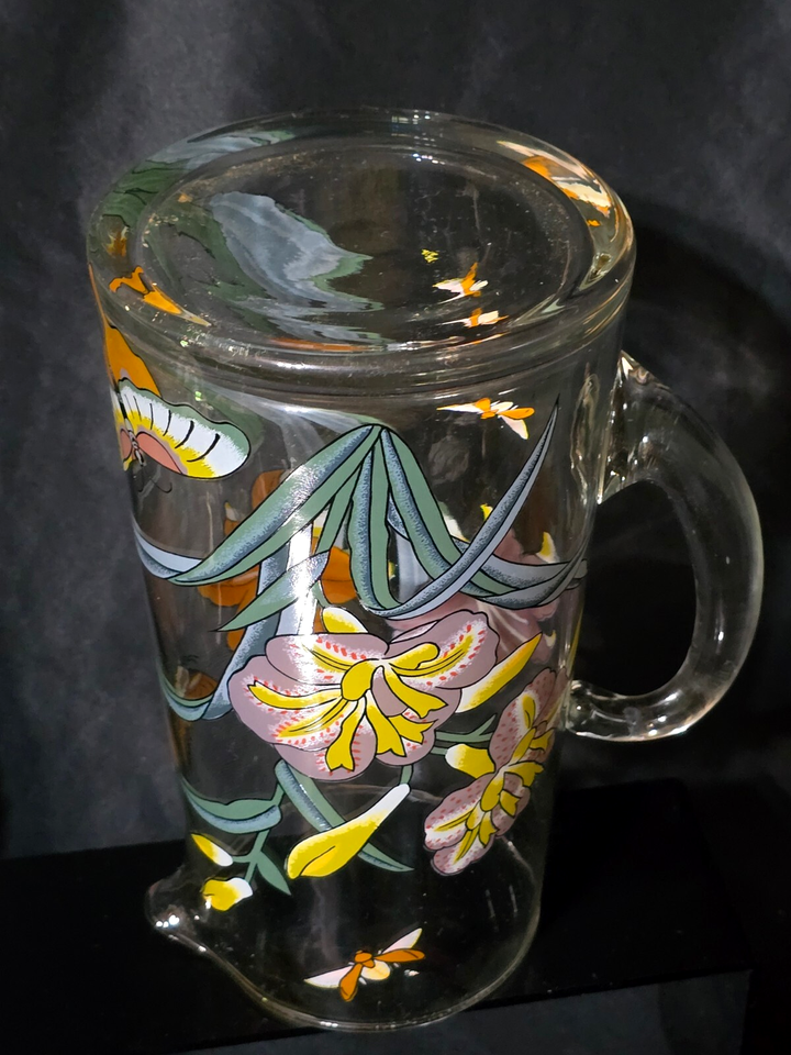 - Vintage DOROTHY THORPE 48oz Pitcher LILY'S BUTTERFLIES & BEES - 9" Carafe Jug