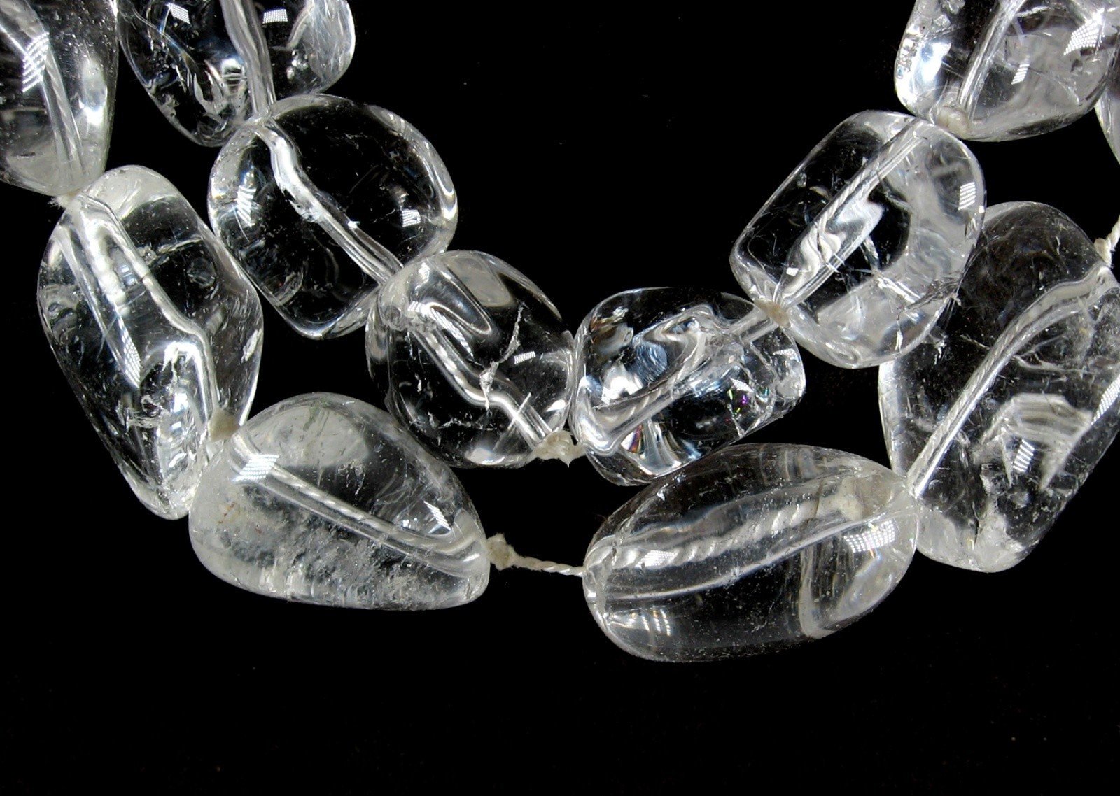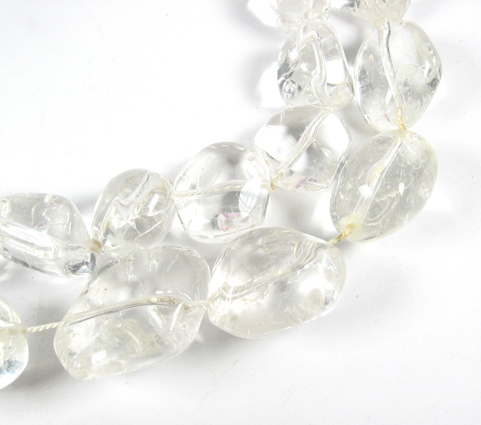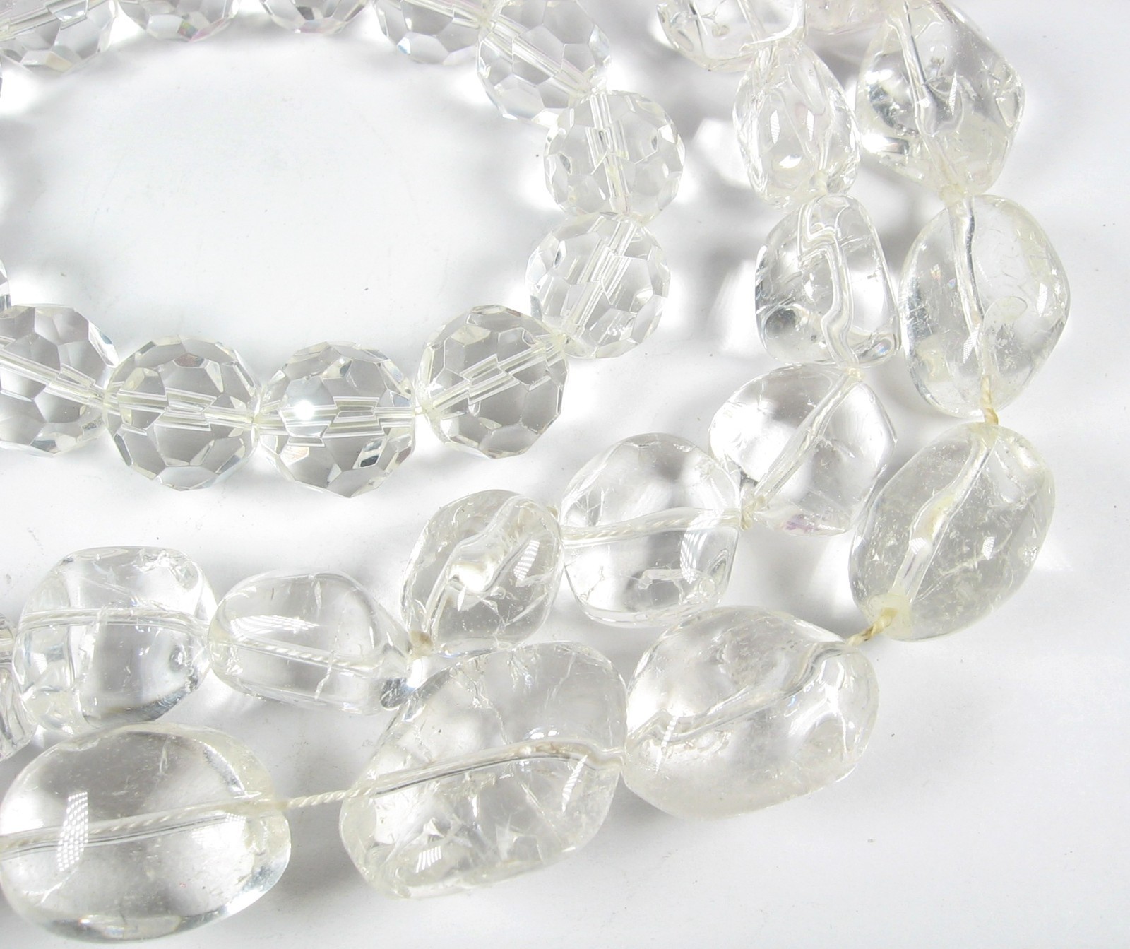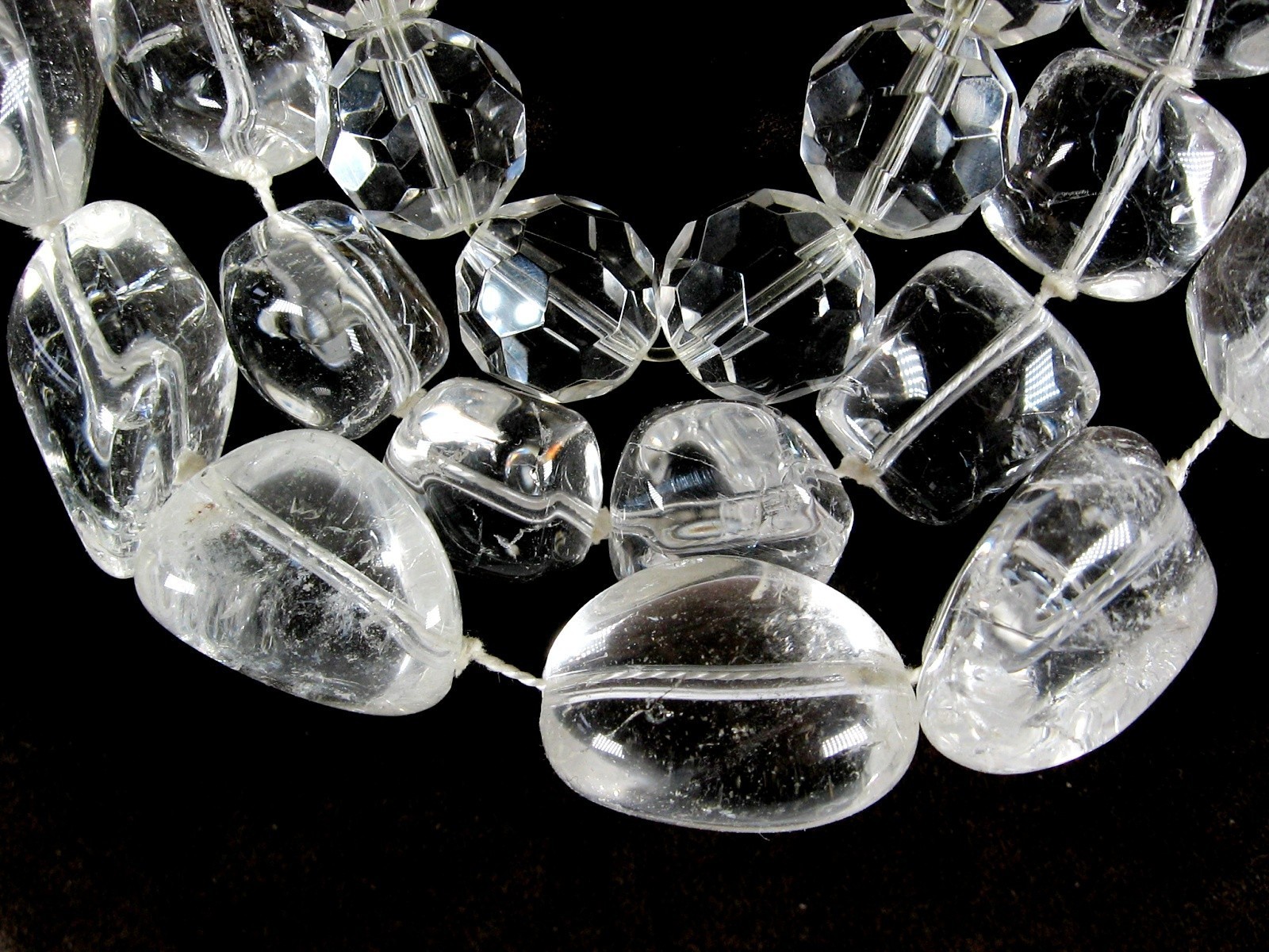 Vintage Double Strand CLEAR GLASS ICE NUGGETS Beads Plus Beaded BRACELET 18" This is a vintage CLEAR GLASS BEADED DOUBLE STRAND NECKLACE PLUS A BRACELET! While not an exact match, both of these vintage pieces have CLEAR GLASS BEADS! The necklace has glass beads that are chunky, rounded and all different sizes and shape. It is a heavy necklace with a toggle clasp. The bracelet has round faceted clear glass beads strung on an elastic stretchy string. Although not an exact match they would look great together! CRYSTAL CLEAR VINTAGE ICE! MATERIAL: Glass METAL: Silvertone CLASP: Necklace has a Toggle clasp, Bracelet is strung on elastic stretch cording MEASUREMENTS: Necklace length is 18" and the Bracelet measures 6" unstretched CONDITION: These pieces of jewelry are in pre-owned and vintage used condition. The clasp is in full working order. The bracelet's elastic stretches as expected. The beads on the necklace have some play along the string which is showing wear and it may have to be restrung at some point. There is scratching and finish wear present. mrzipmdo Just Jewelry by MrZipMDO
