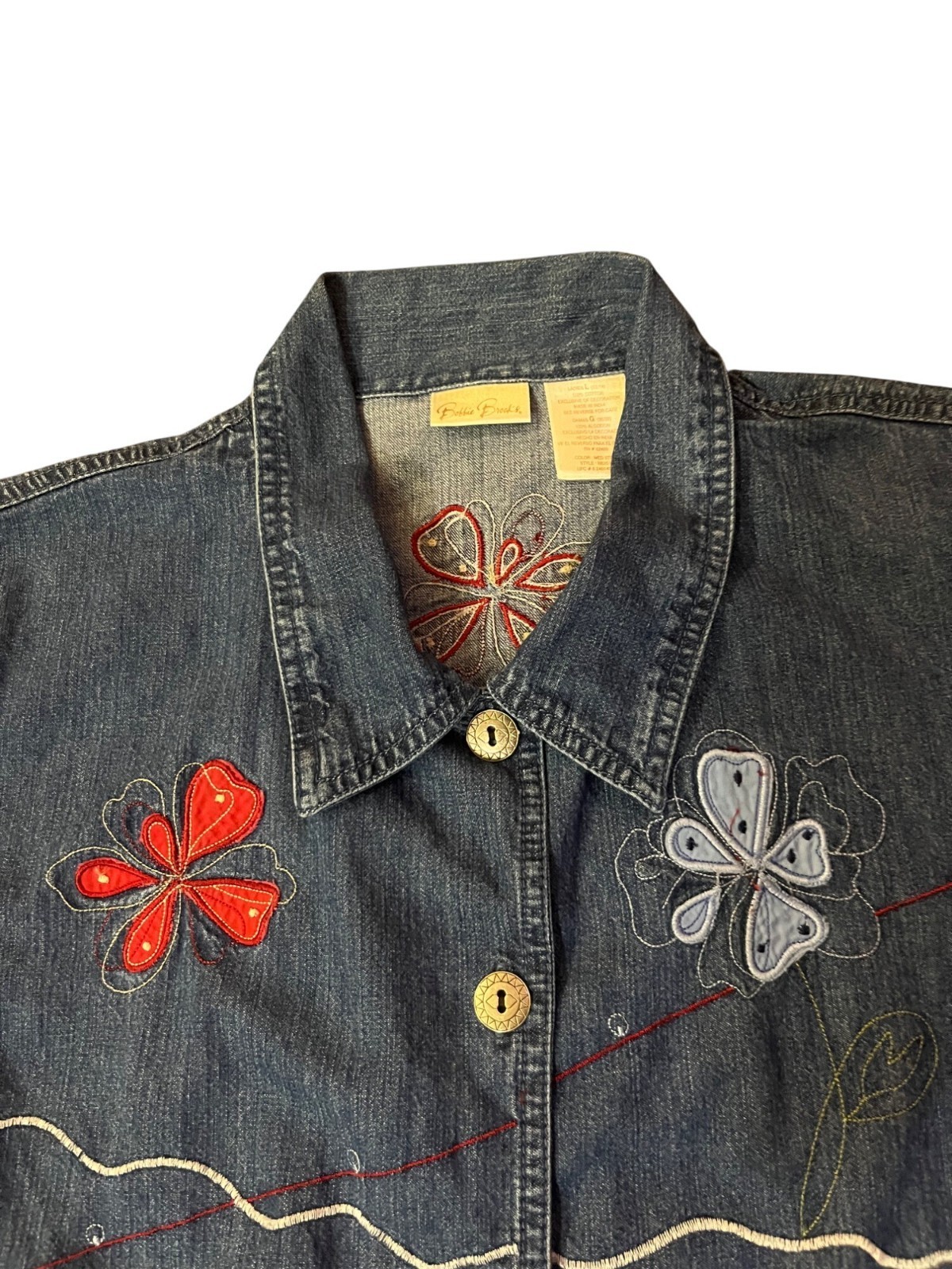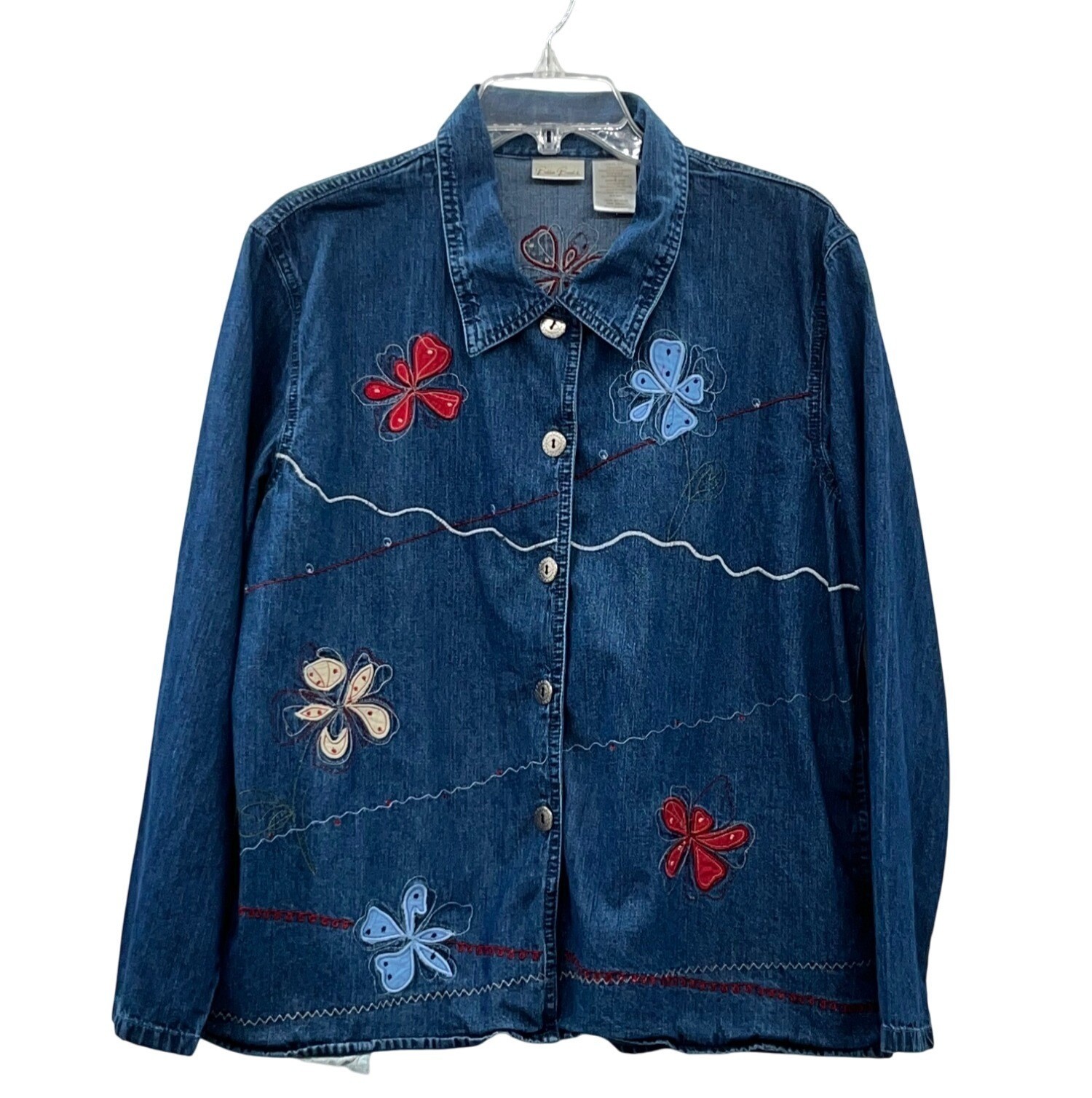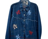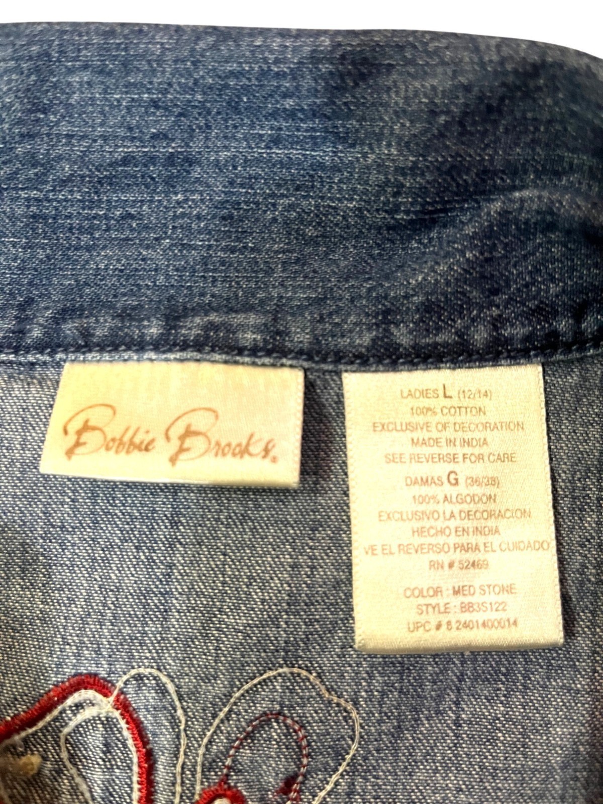 Vintage Early 2000s Bobbie Brooks Denim Blouse Womens L Floral Embroidered