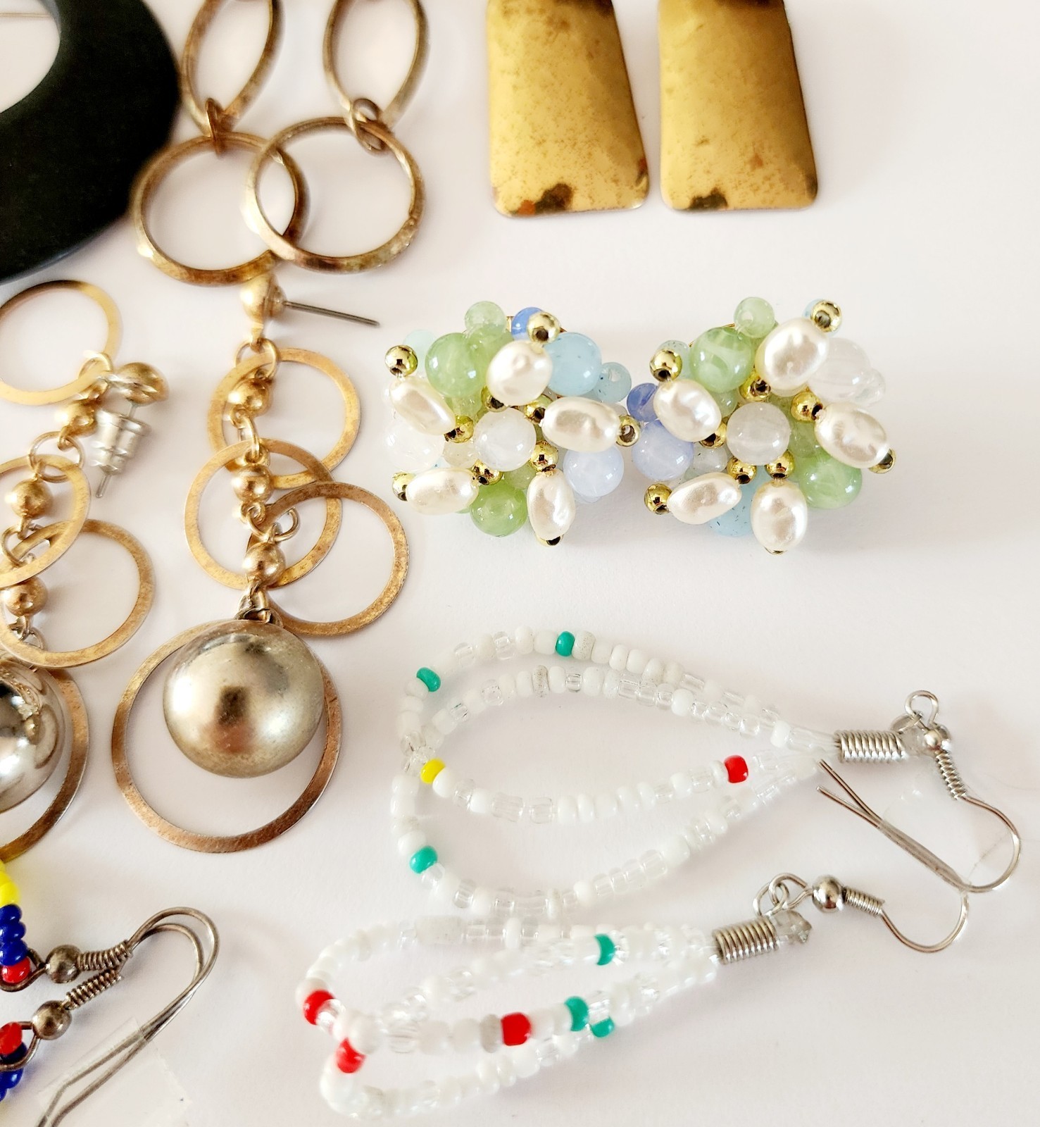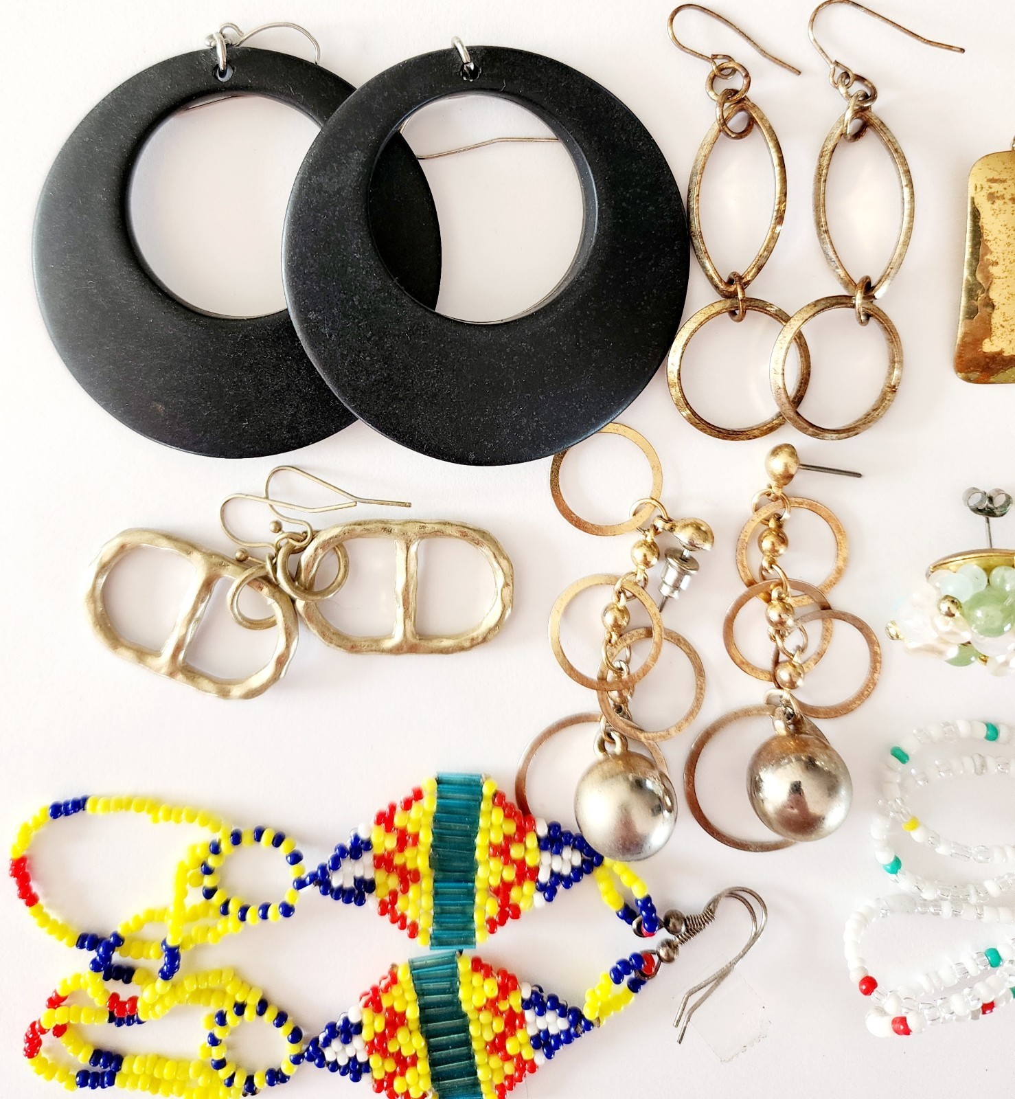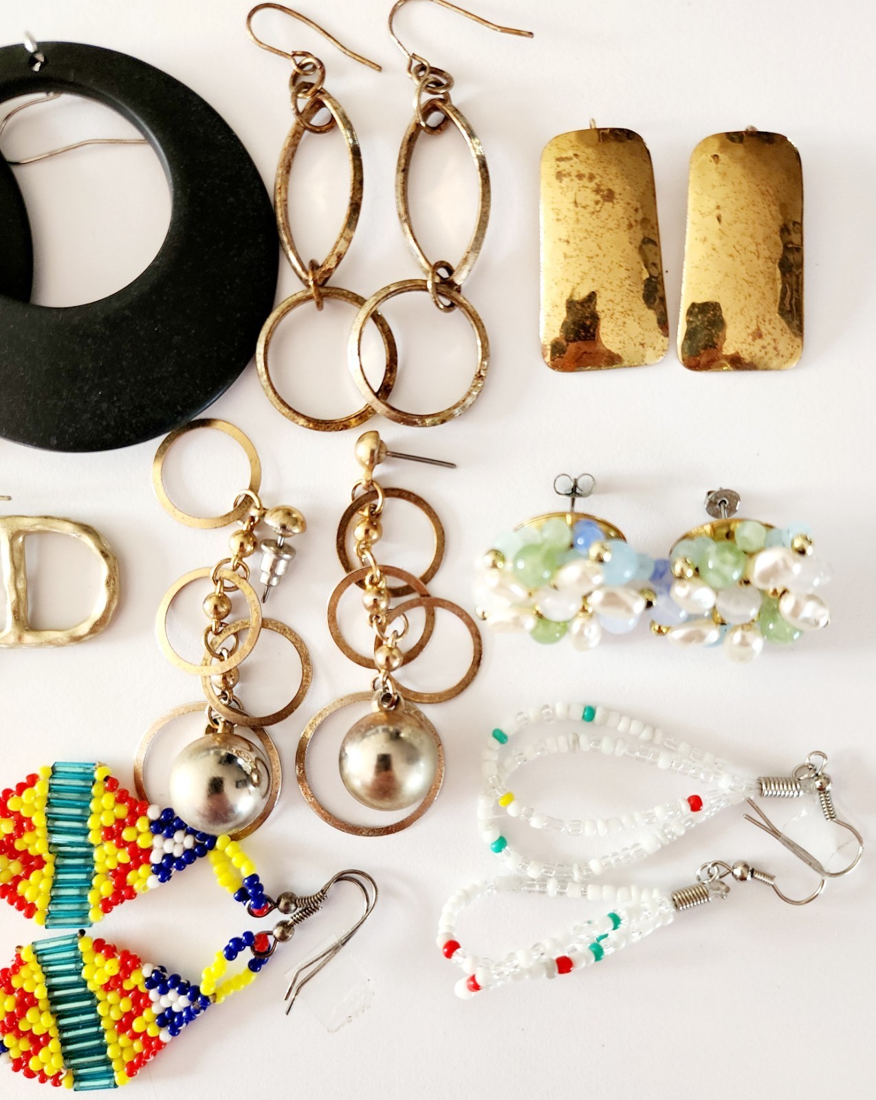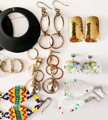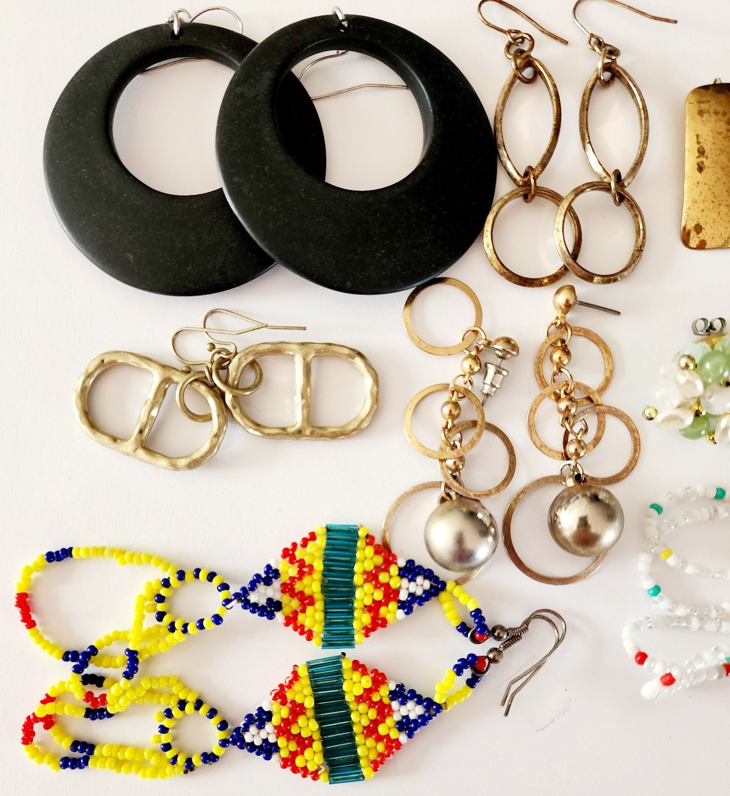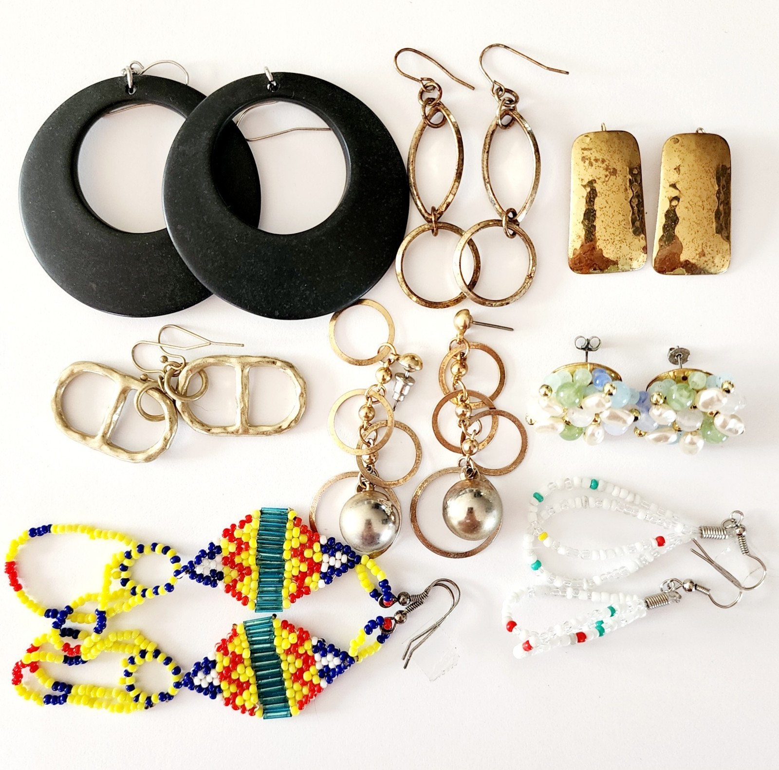 - Vintage Earrings Lot Of 8 Pairs Metal Beaded Industrial Hoop Dangle Jewelry E8