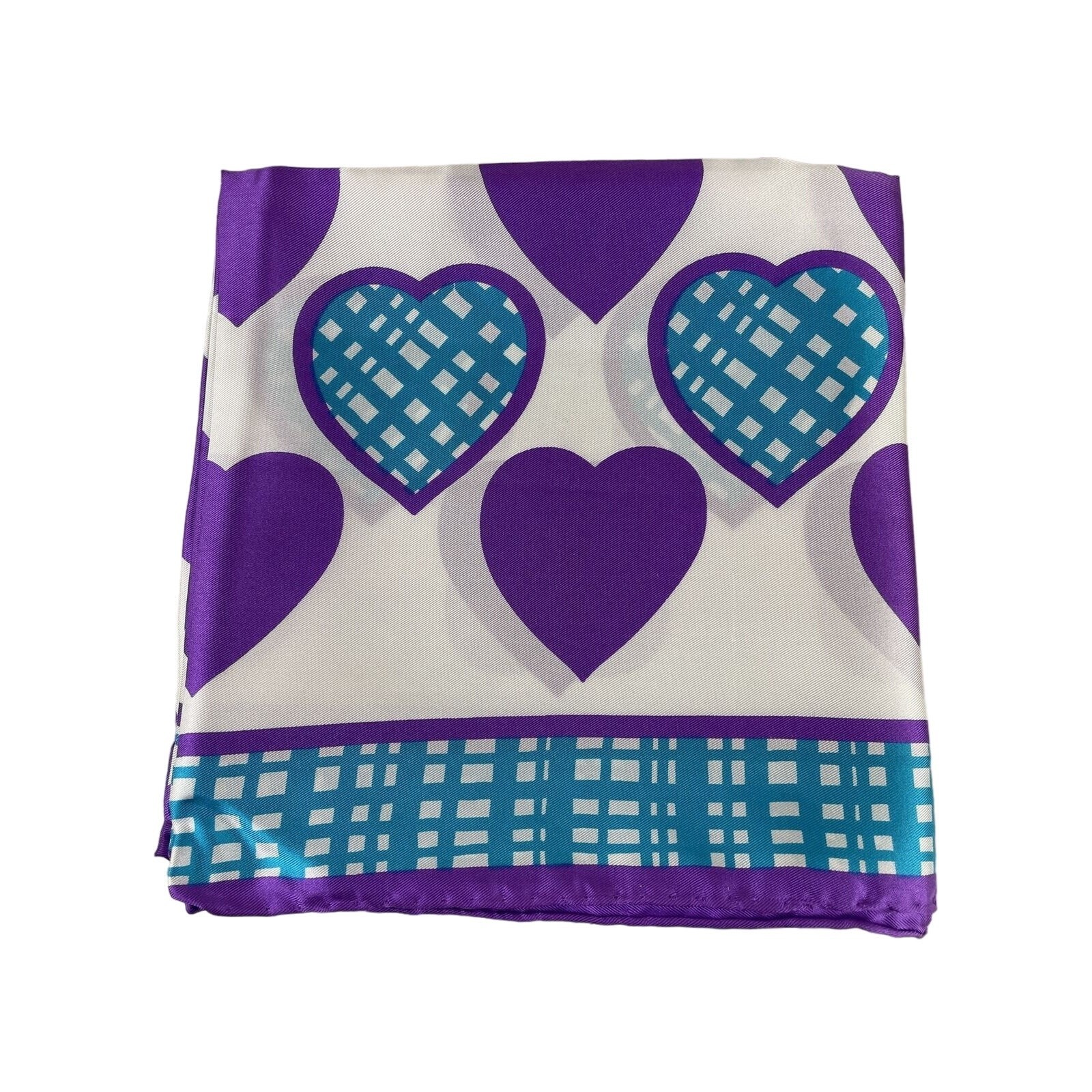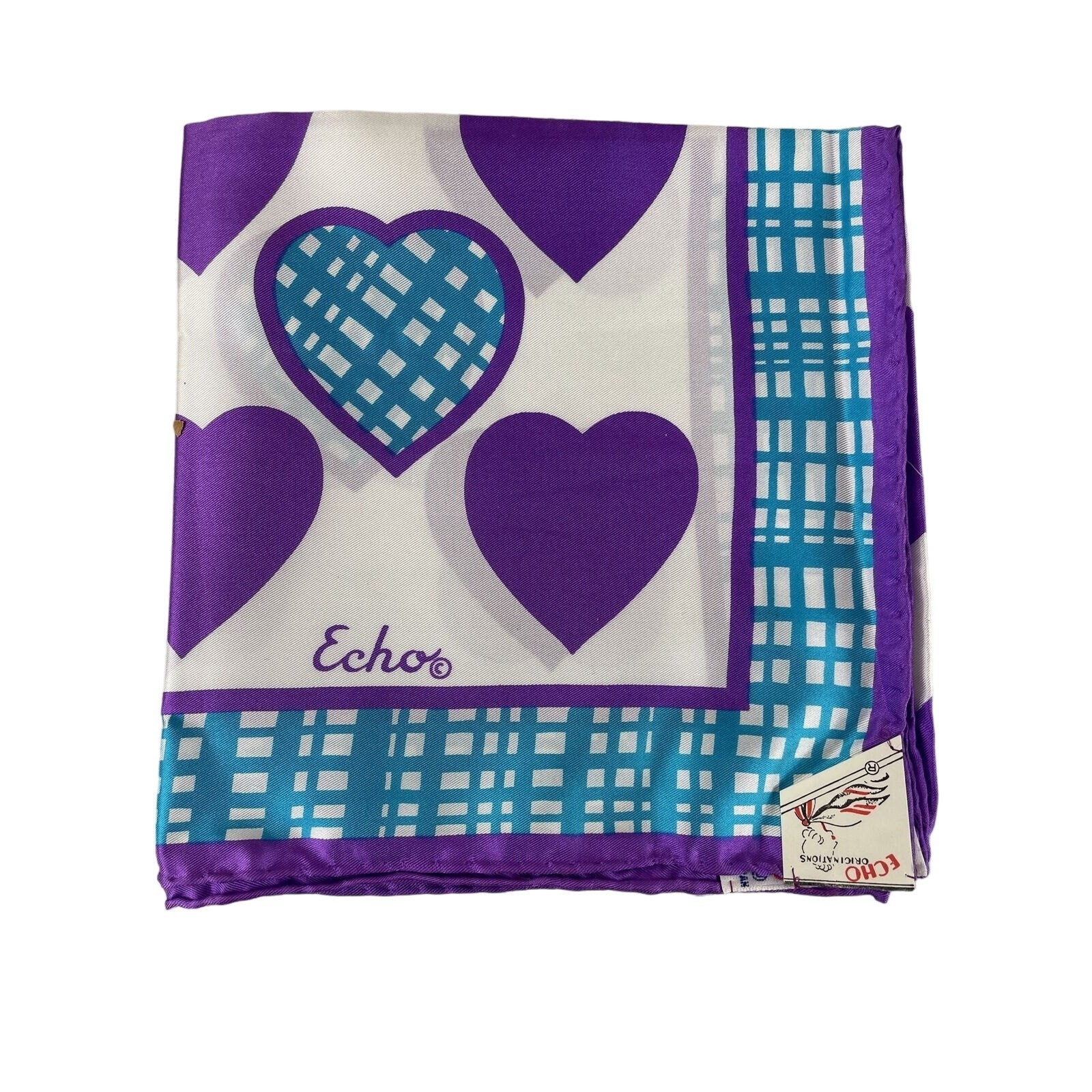 - Vintage Echo Silk Scarf NOS Purple & Turquoise Hearts w/ Bullocks Gift Box Tags