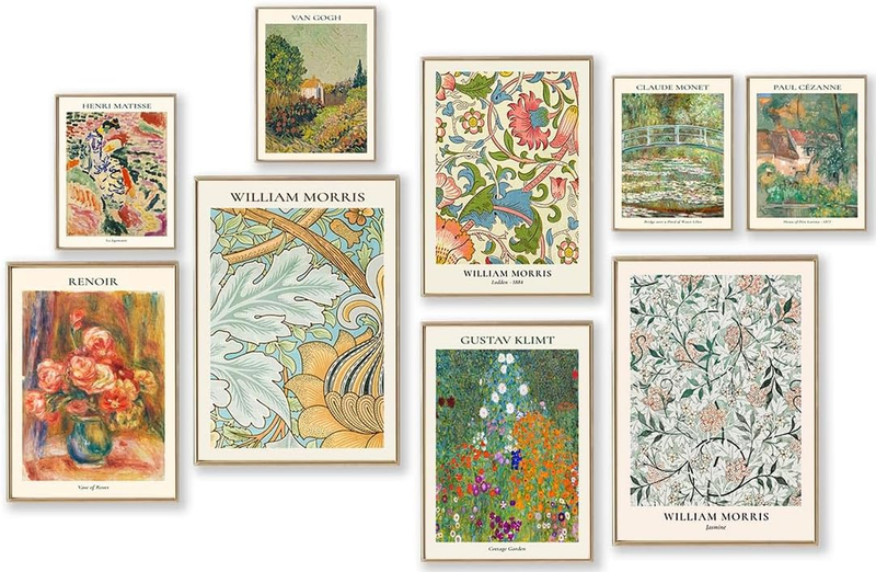 Vintage Eclectic Wall Art Prints Set of 9, Abstract Eclectic Wall Decor Matisse William Morris Van Gogh Monet Maximalist Famous Artist Painting Pictures, Trendy Maximalism Poster for Aesthetic