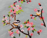 - Vintage Embroidered Songbird Cherry Blossoms 10x10 Handmade Fabric Textile Art