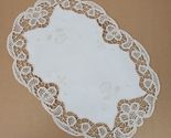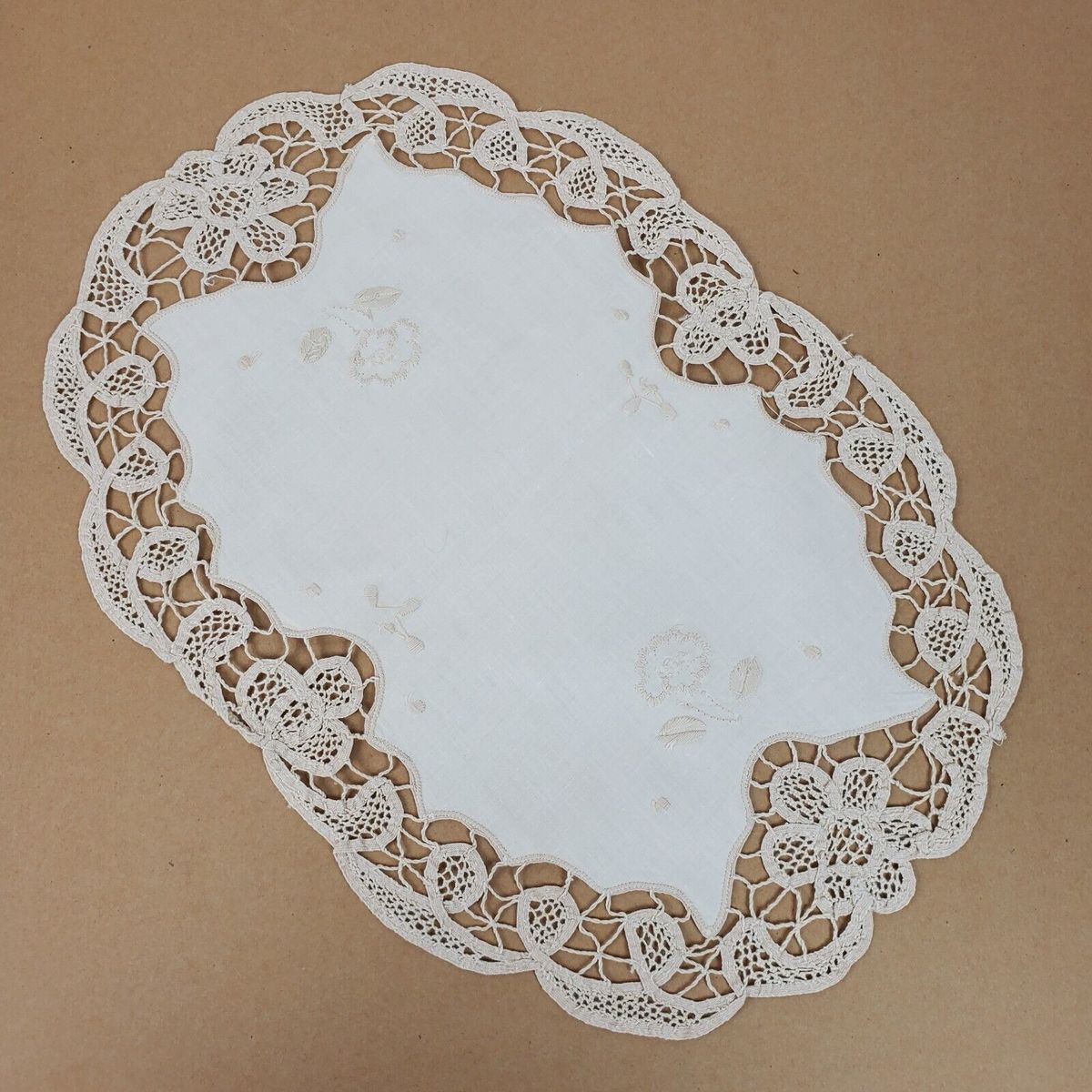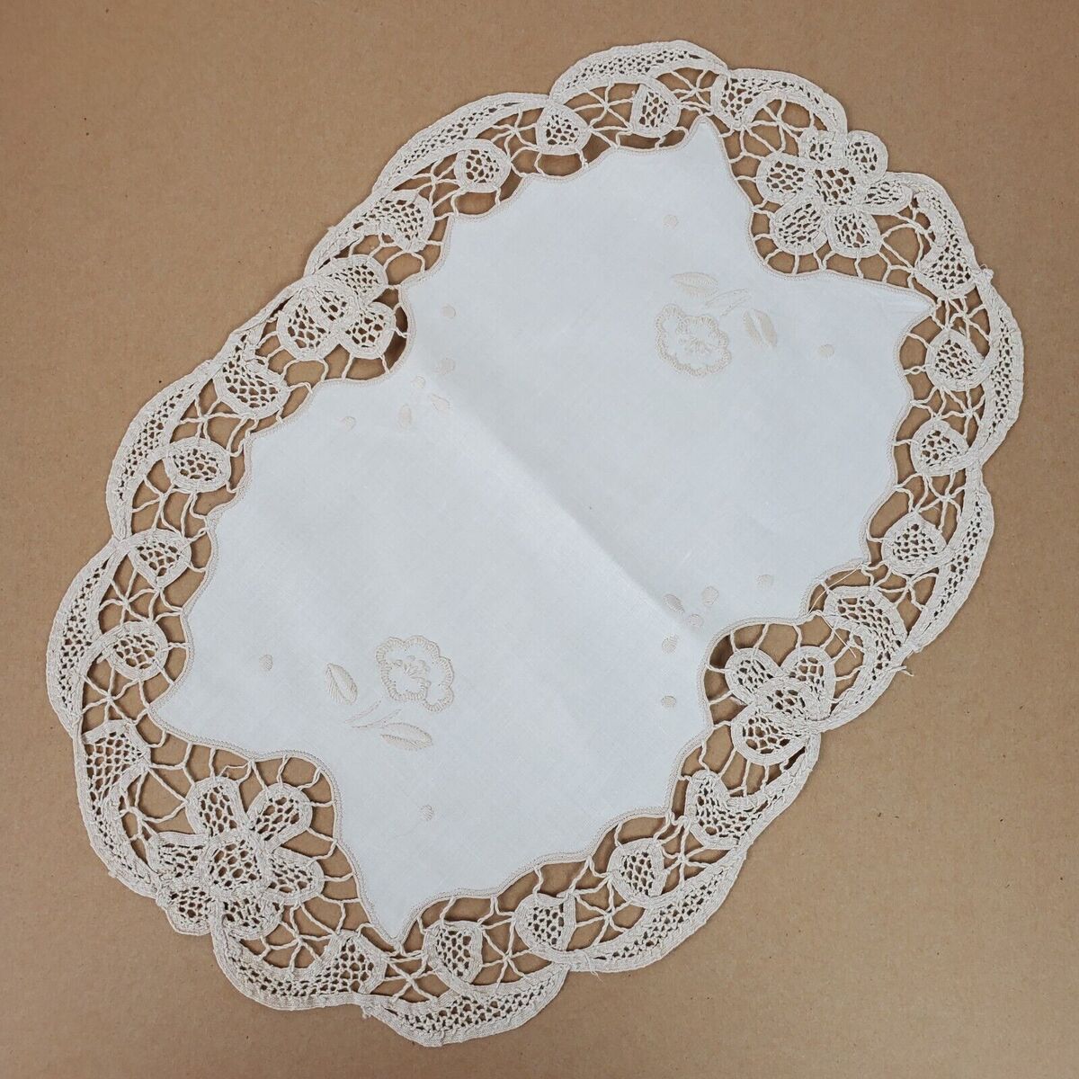 - Vintage Embroidery Table Runner Oval Dresser Doily Beige 16x11 Inch