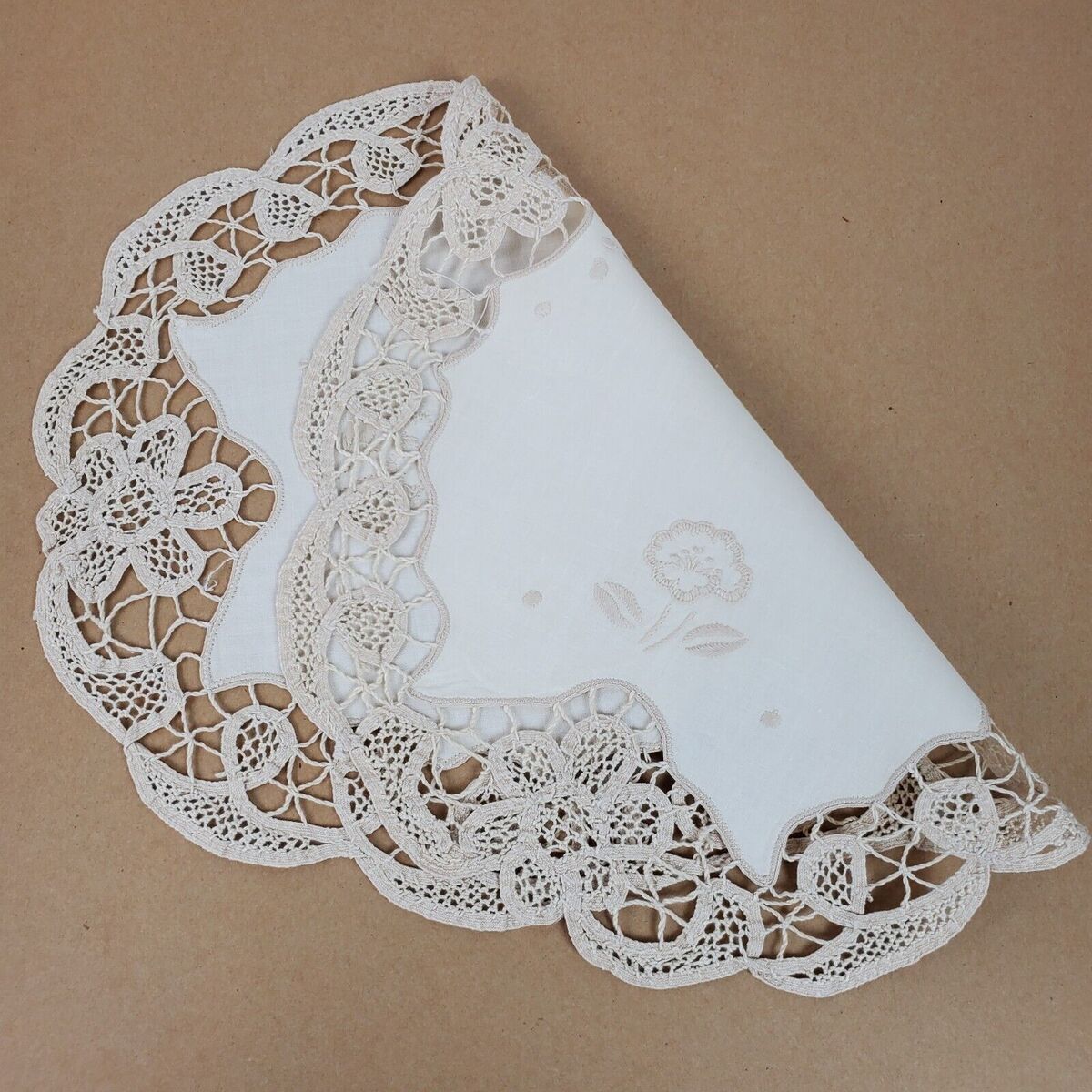 Vintage Embroidery Table Runner Oval Dresser Doily Beige 16x11 Inch