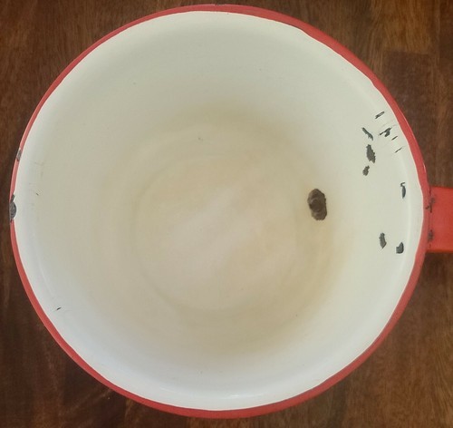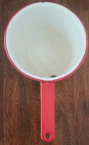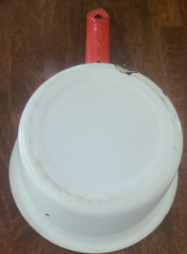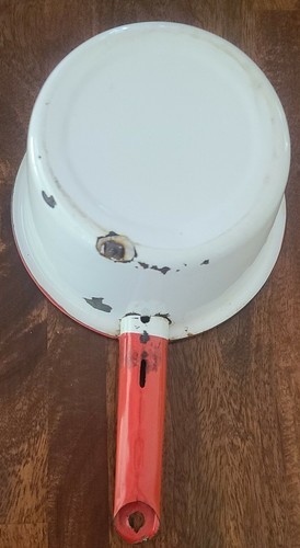 Primary image for Vintage ~ Enamelware ~ Red & White ~ Handled Pot ~ Pan ~ Farmhouse Cookware (1)