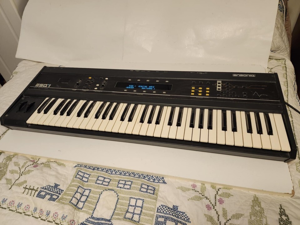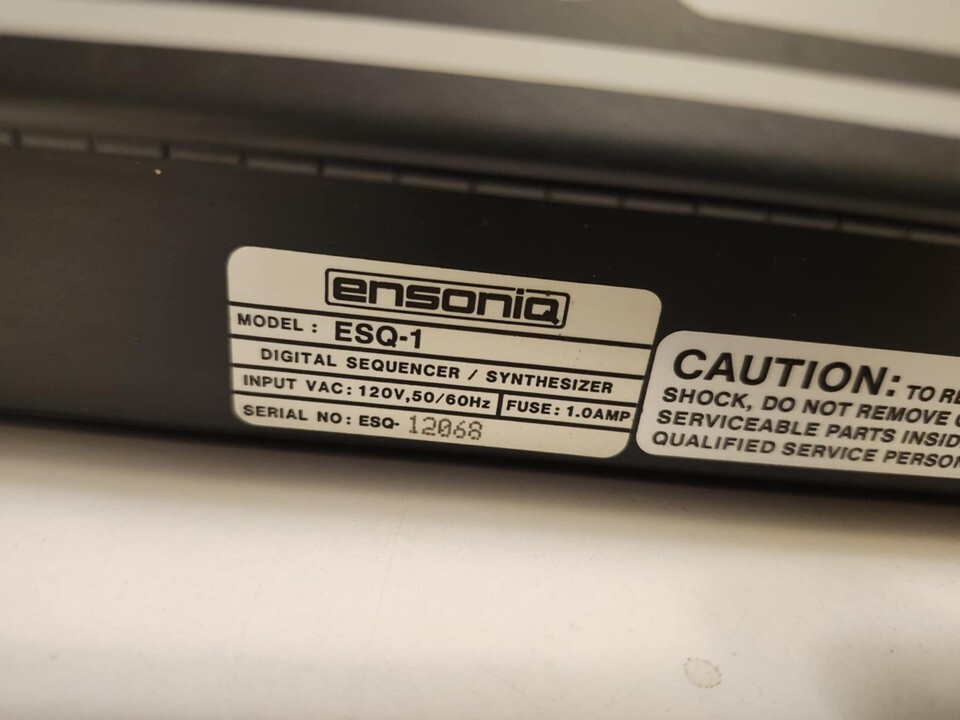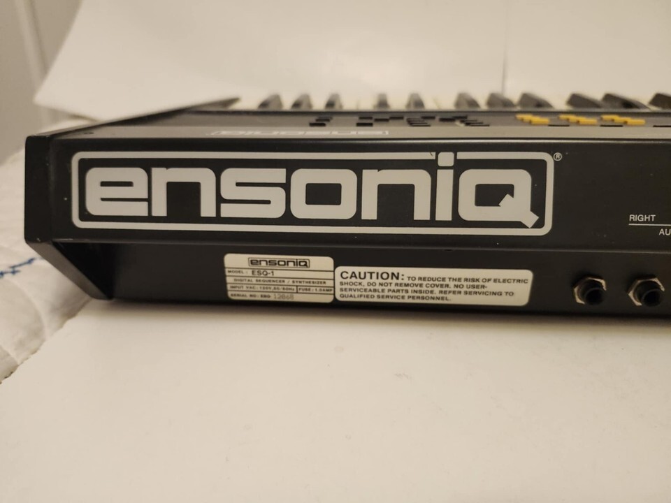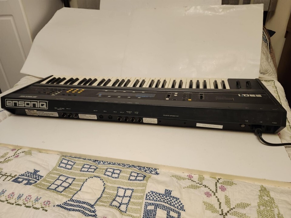 For sale is this Vintage Ensoniq ESQ-1 Digital Wave Synthesizer Keyboard Powers up but Untested. This item is being sold AS IS because we don't have the ability to fully test it. We do know it powers up and responds to the keys being pressed. Beyond that, we make no guarantees. Looks like there was some sort of modification that added a battery, one wire is unsoldered, not sure what they was meant for. NO RETURNS, NO REFUNDS! Shipping will calculate based on your location.