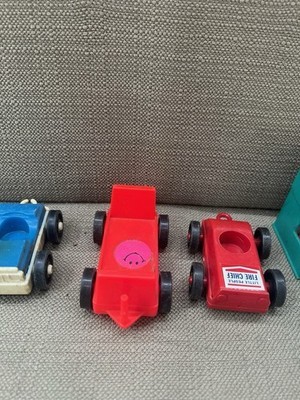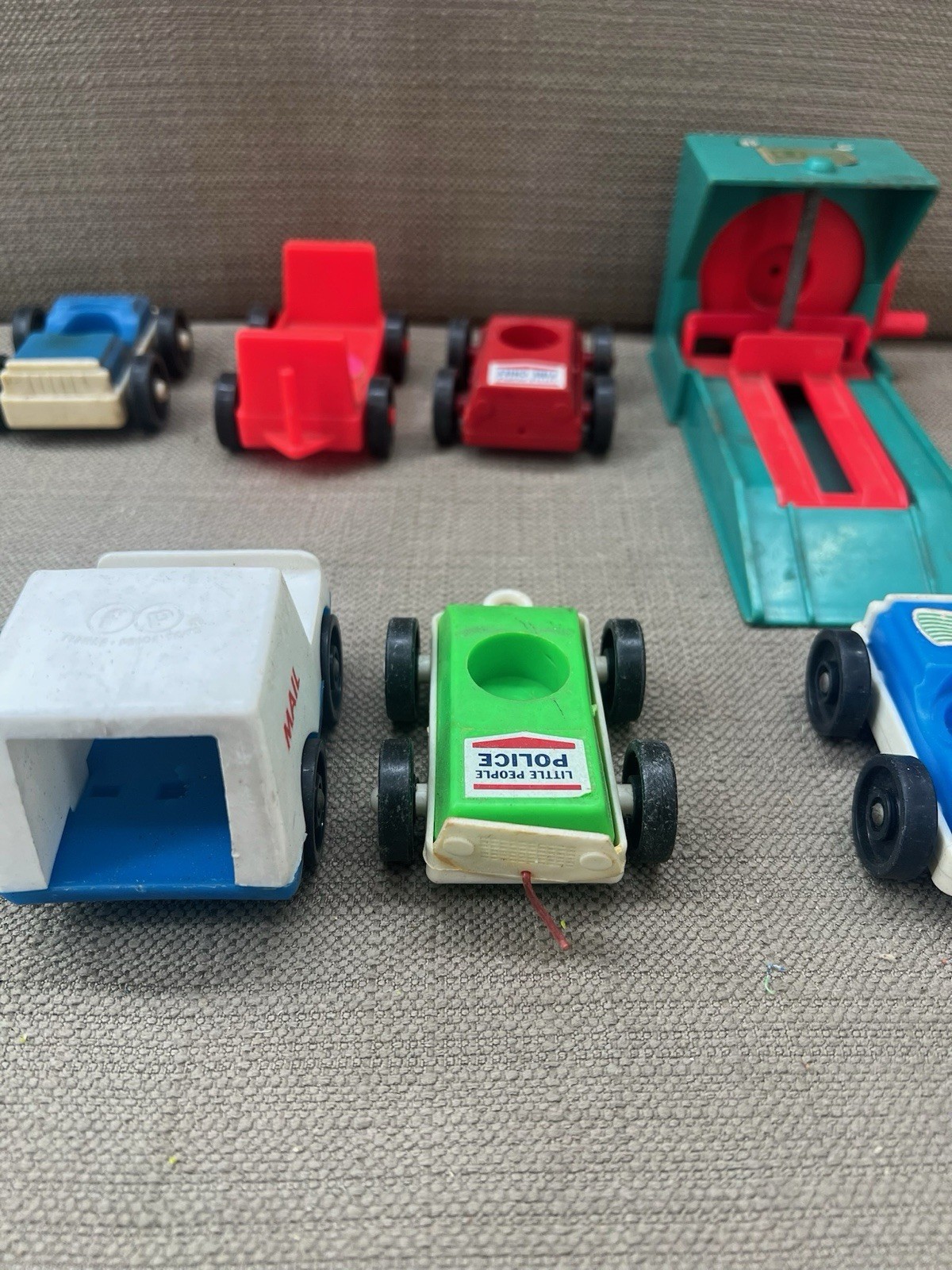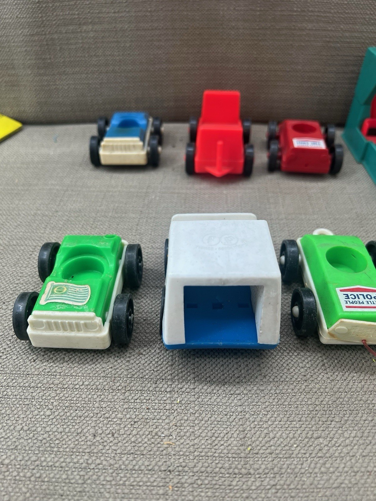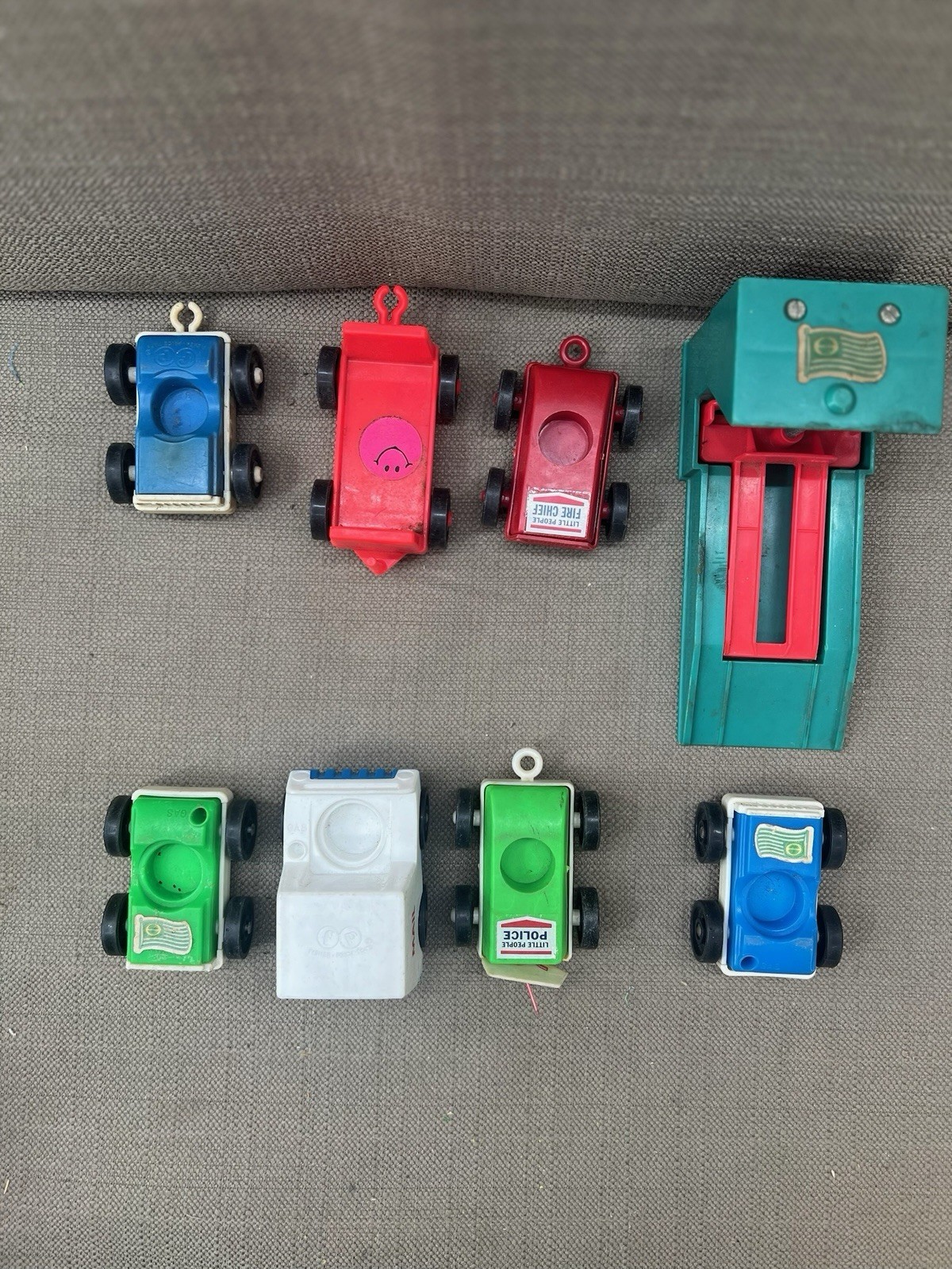 ? 7 vintage Fisher-Price Little People cars (various colors and decals)