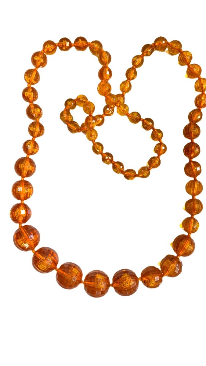 - Vintage Faux Amber Bead Necklace 36" Long Graduated Faceted Beads 1930s Look