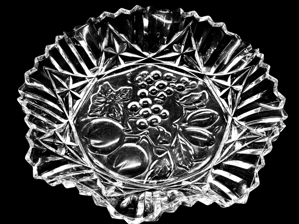 Vintage pair of Pioneer fruit pattern bowls by Federal Glass in excellent condition. Great clarity, no evidence of damage or wear. Bowls measure about 11.25" in diameter.