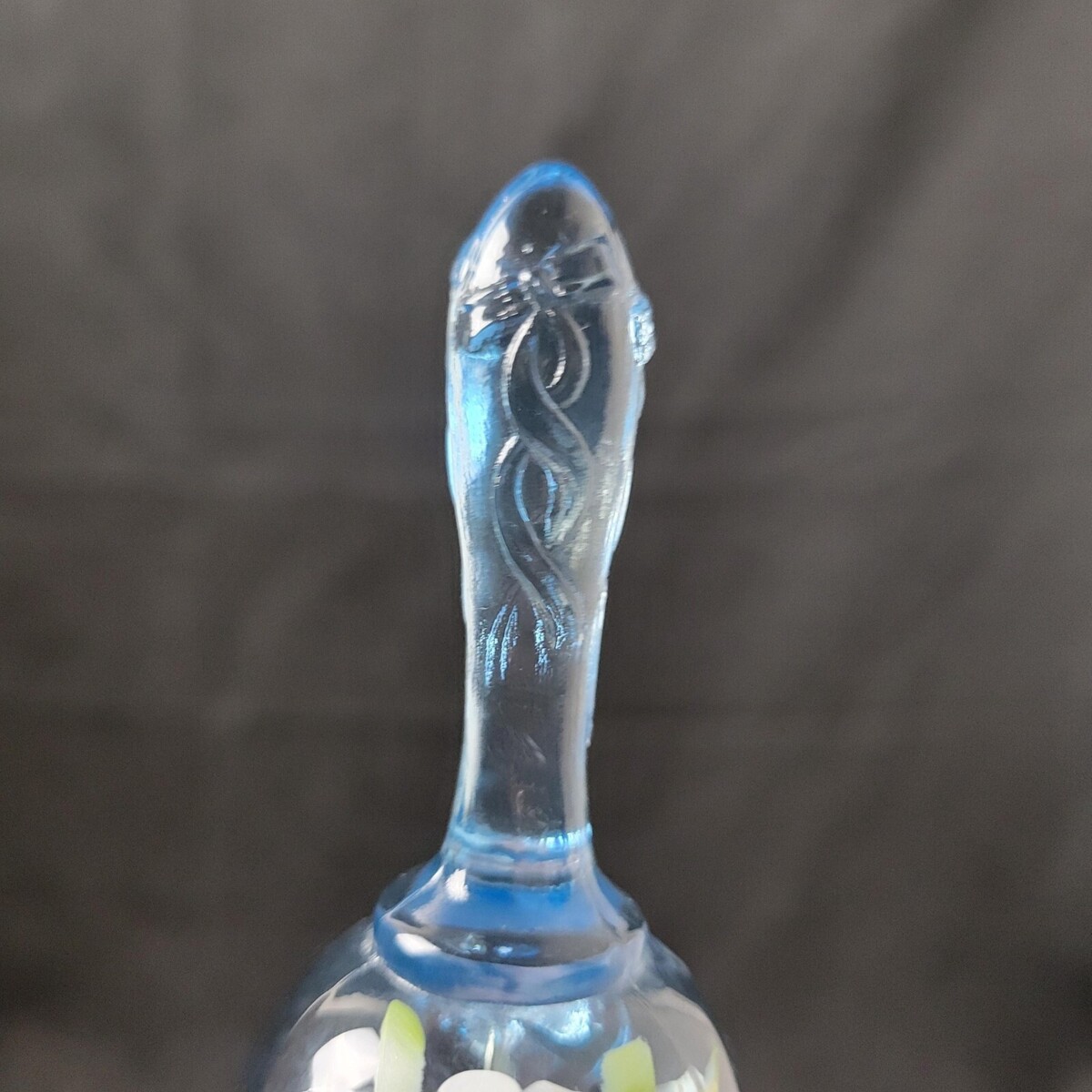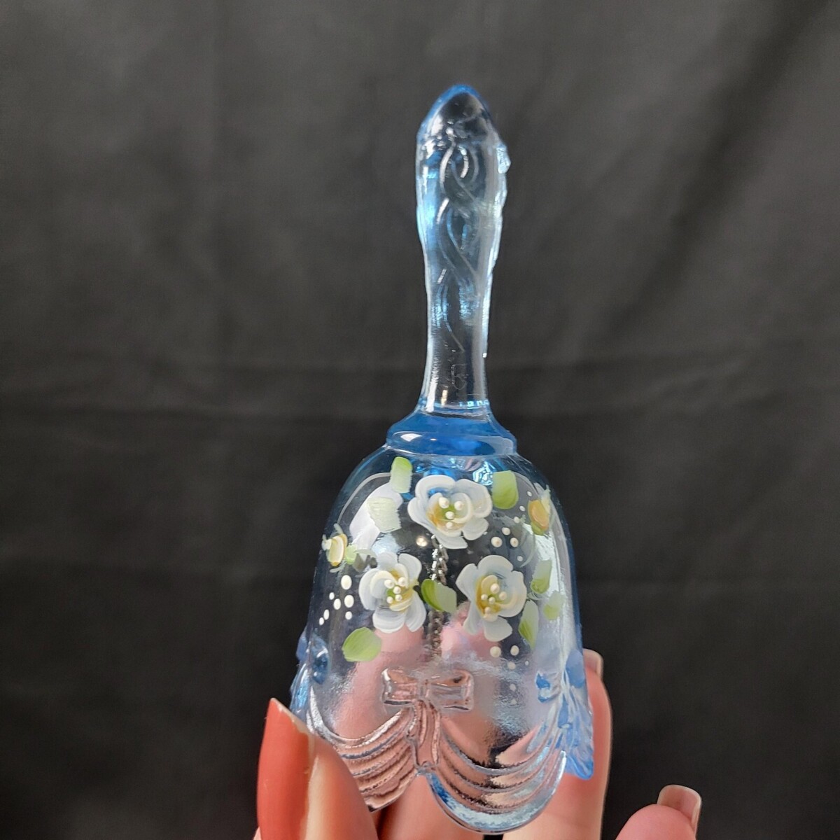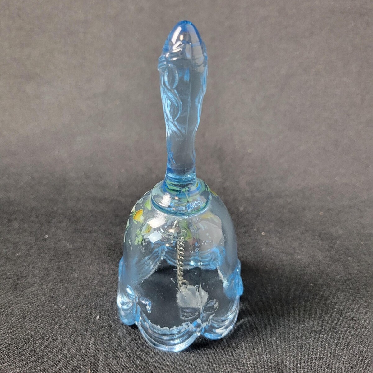 - Vintage Fenton Aqua Blue Art Glass Bell Hand Painted Signed by D Cutonaw Floral