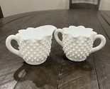 - Vintage Fenton Hobnail Milk Glass Creamer And Sugar Star Pattern Set White