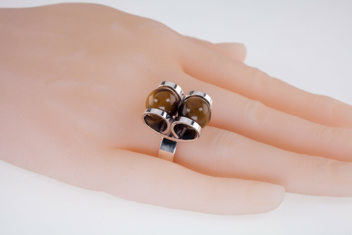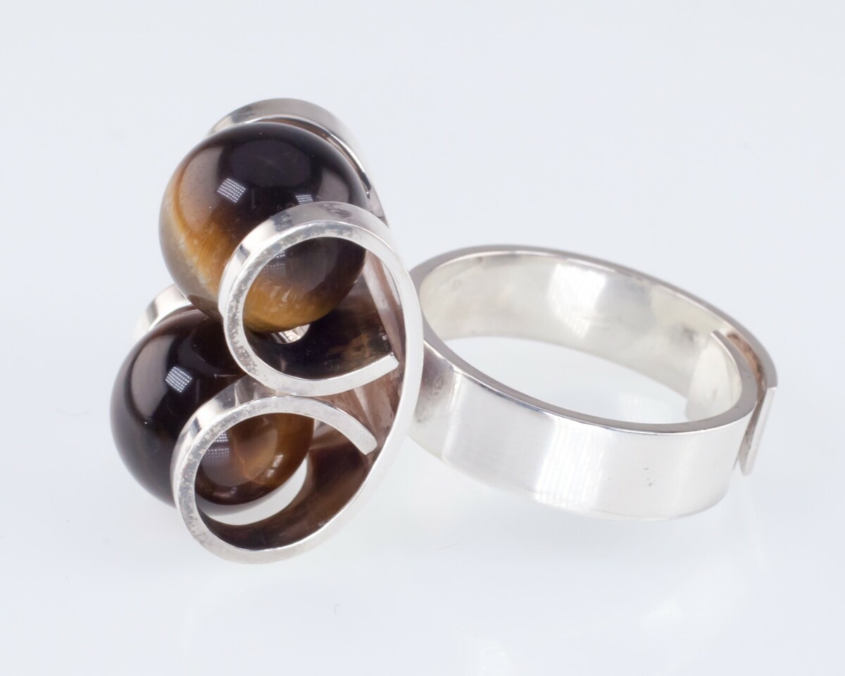 Anneau reglable a l'?il de tigre sterling Elis Kauppi unique vintage unique