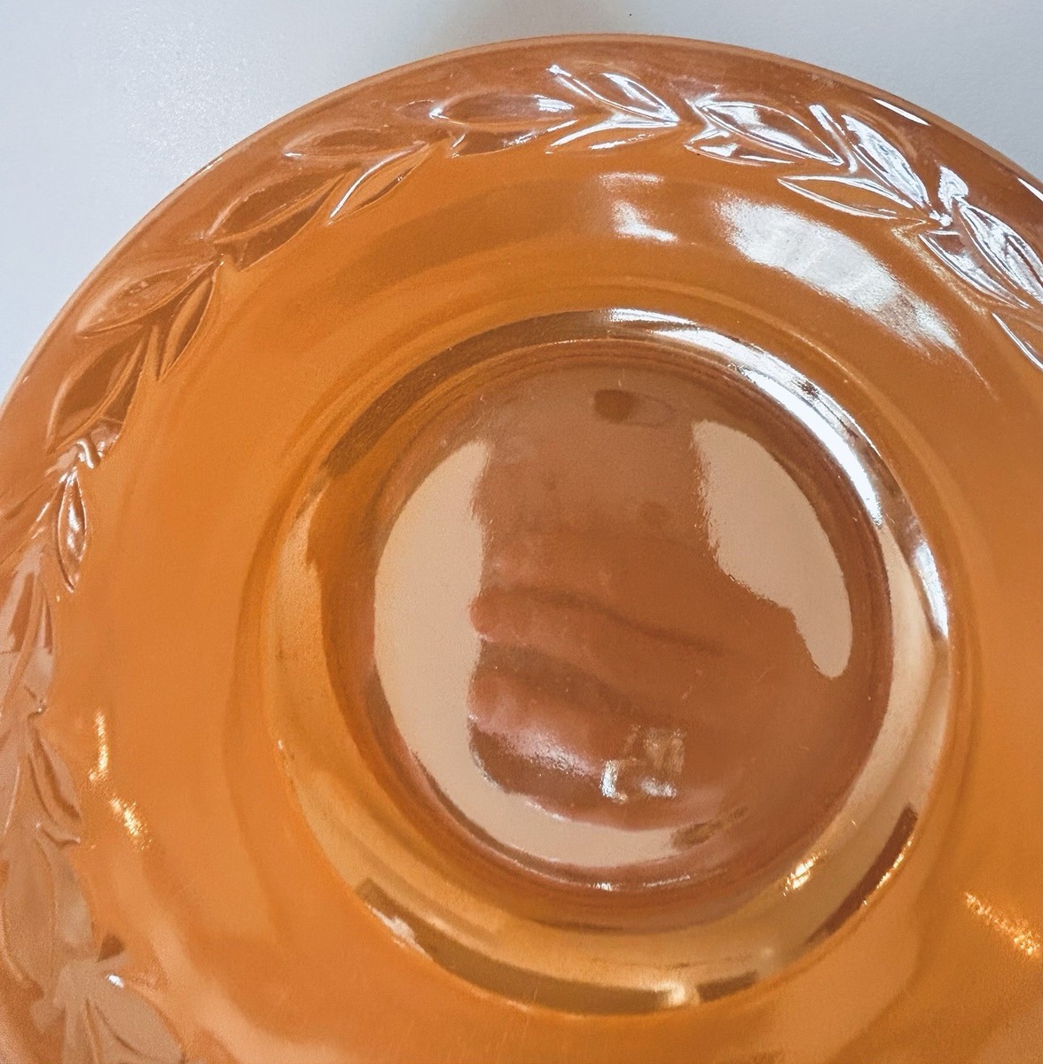 - Vintage Fire King Anchor Hocking Peach Luster Laurel Leaf 8" Serving Bowl