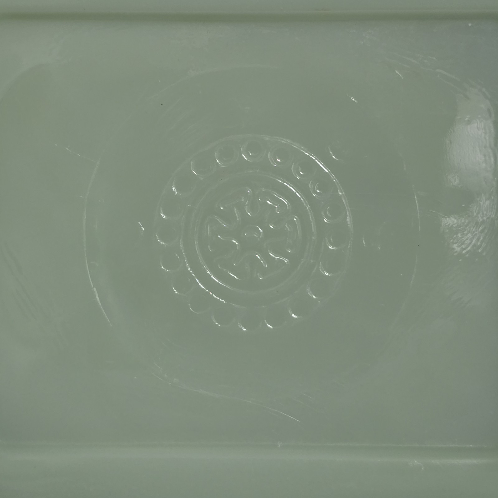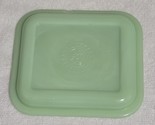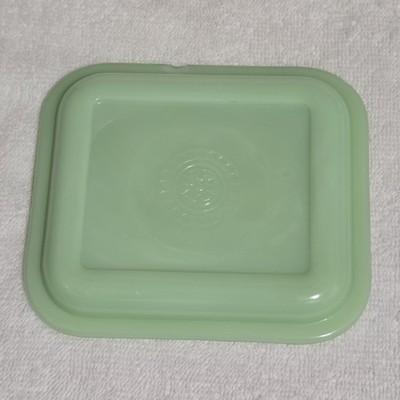 Vintage Fire-King jadeite refrigerator dish lid (green) Measures approx. 5" x 4 OE" Embossed sunburst/starburst pattern on top Fits matching rectangular Fire-King refrigerator dish base Authentic Anchor Hocking jadeite, mid-century era ***Comes exactly as pictured. Original Fire-King jadeite lid with surface scratches and chipped on the rim (see photos). Please see photos.*** SMOKE FREE HOME! SUPER FAST SHIPPING! 11-B