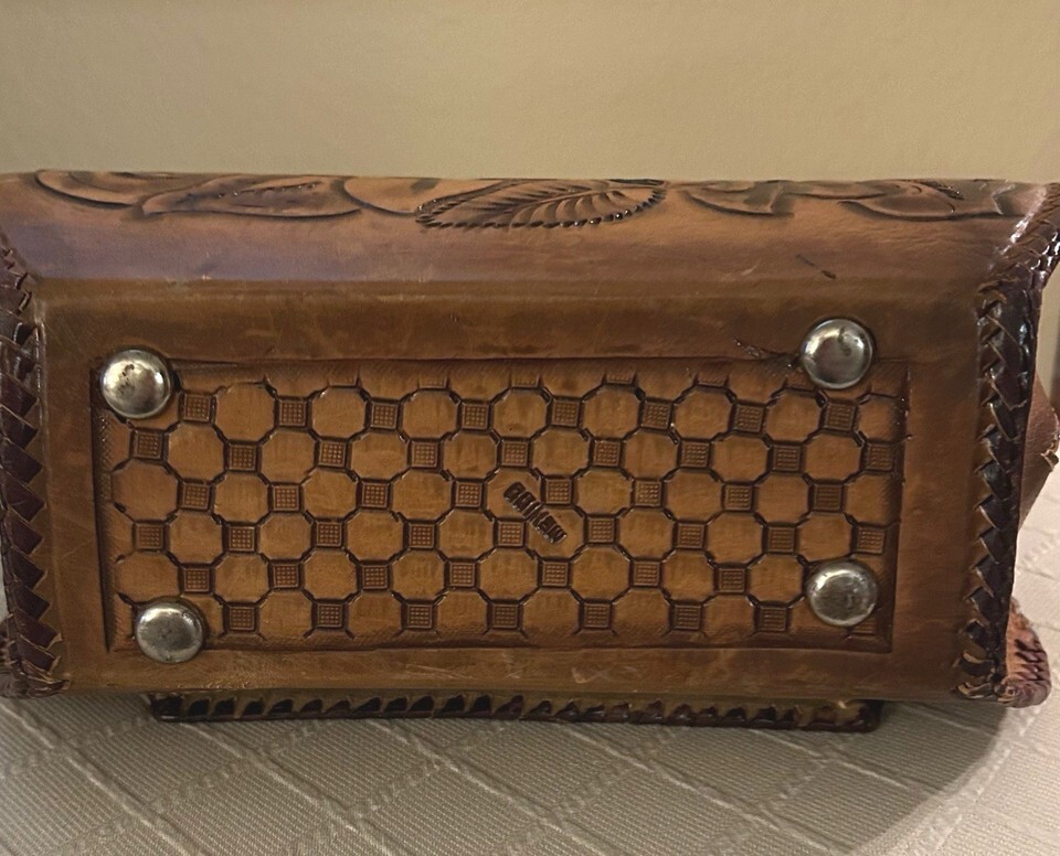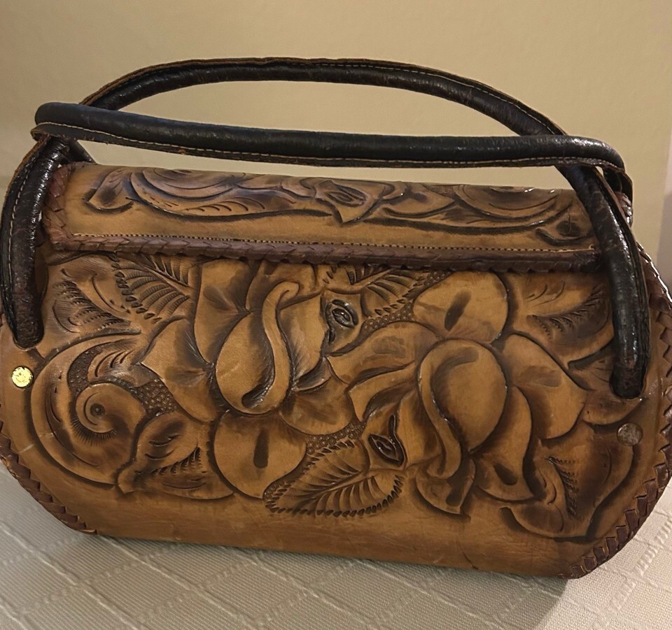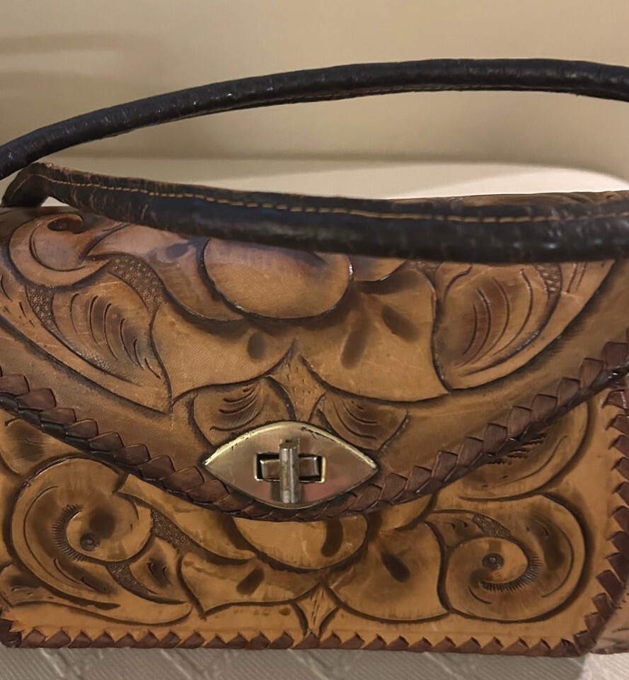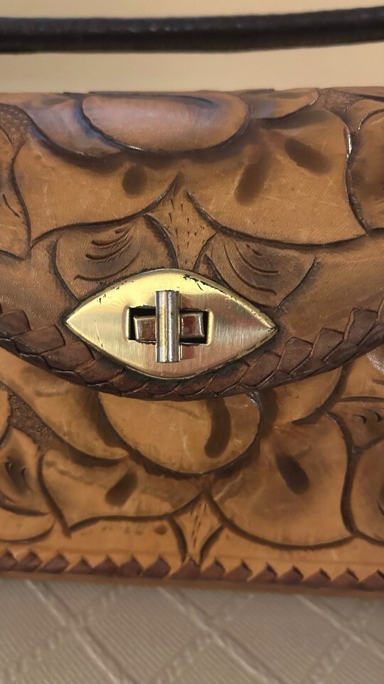 - Vintage Floral Hand Tooled Leather Shoulder Bag BrownTwist-Lock Closure