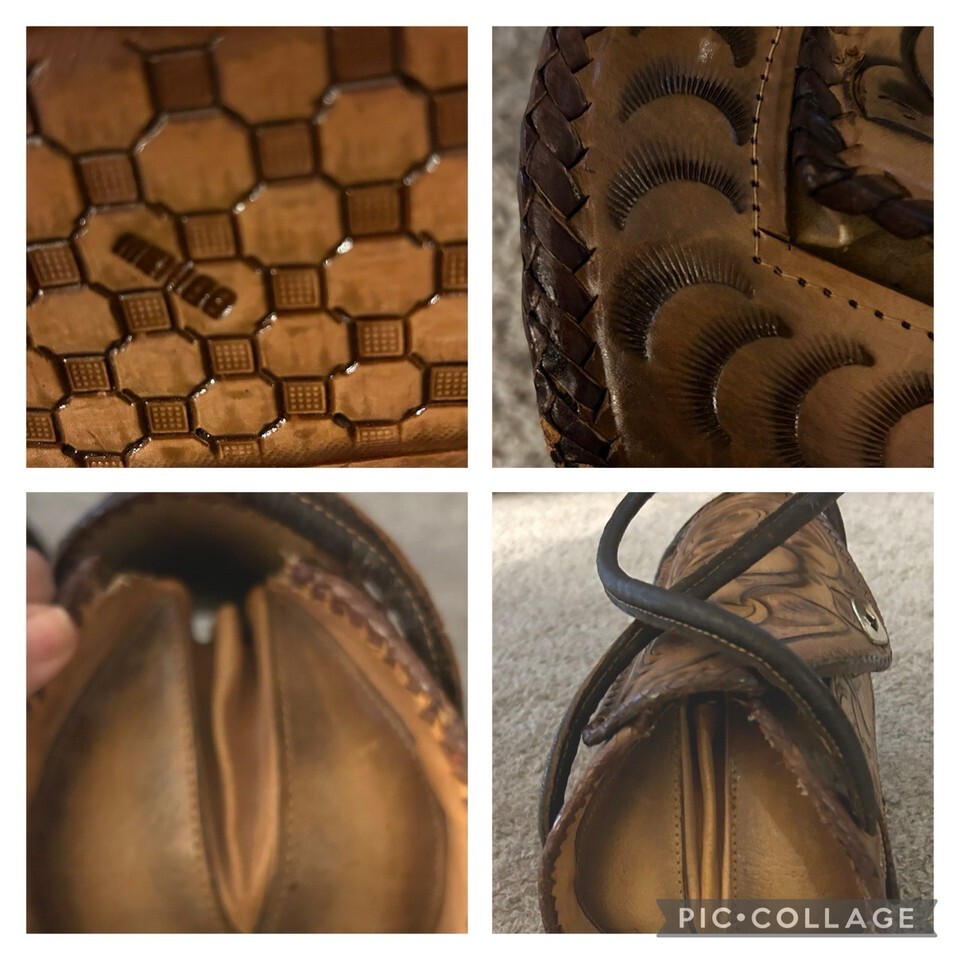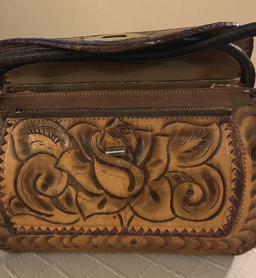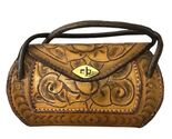 Vintage Floral Hand Tooled Leather Shoulder Bag BrownTwist-Lock Closure