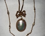 Vintage Florenza Goldtone Shell/Pearl Pendant Double Link Chain Bow Necklace