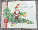 Primary image for Vintage Folded Christmas Holiday Card “Greetings” Santa W Ornaments