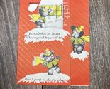 Vintage Folded Christmas Holiday Card “What My Wish Will Be” Bear In Hat/Scarf