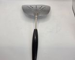 Vintage Foley MPLS stainless steel wide slotted spatula with its original black handle. This classic mid-century kitchen tool is known for its sturdy construction and broad, gently curved blade. It shows normal surface wear and scratching from use, with a slight bend along one edge, but remains solid and functional. A great addition to a vintage kitchen collection or for everyday cooking. Details Authentic vintage Foley MPLS stainless steel construction Wide, curved, slotted turner head Original black plastic handle Pre-owned with scratches, wear, and light bend (see photos) Approx. 13" total length; spatula head approx. 5.25" wide