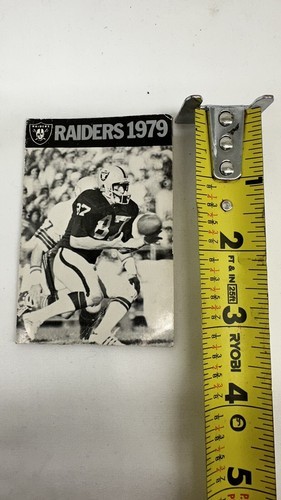 This product is a vintage mini schedule from 1979 featuring the Oakland Raiders football team. The team is known for being the winningest team in NFL history. The item is likely a collectible piece of historical memorabilia for fans of the team or football enthusiasts.