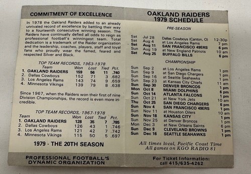 - VINTAGE FOOTBALL OAKLAND RAIDERS MINI 1979 SCHEDULE WINNINGEST TEAM