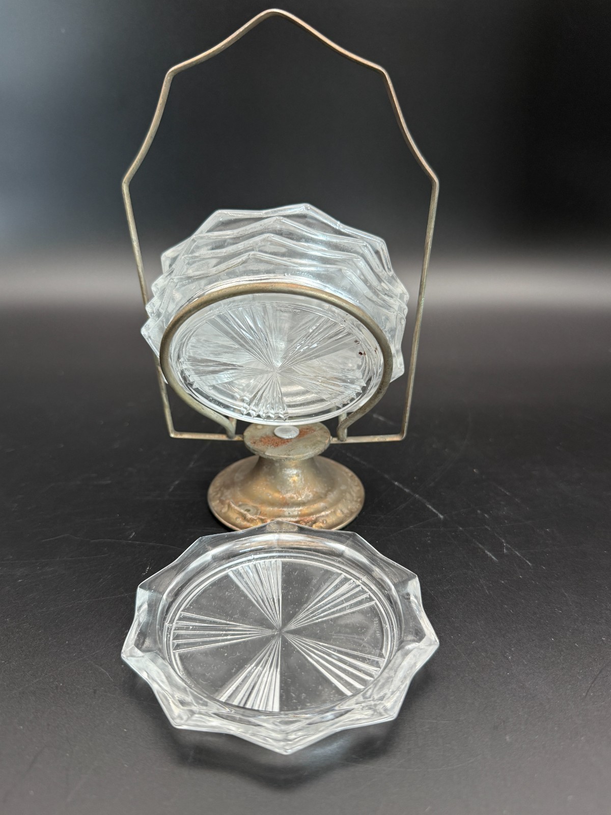 - Vintage French Pressed Glass Coasters – Starburst Design – Set of 5 w Holder