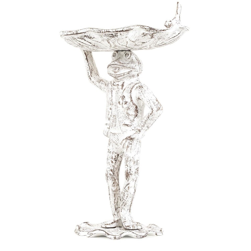 - Vintage Garden Statue 14" Antique White Cast Iron Frog Bird Feeder Flower Plants