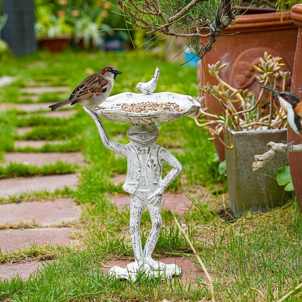 Outdoor Statue: This decorative frog statue bird feeder or candy holder is a perfect addition to the garden, patio, lawn, coffee table. Providing visually attractive and functionality.