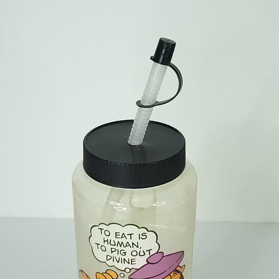 - Vintage Garfield Water Bottle Yo Pig Out Divine Straw KMART Exclusive