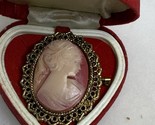 Vintage Gold Tone Cameo Brooch Pin pretty Woman Accent. First class package