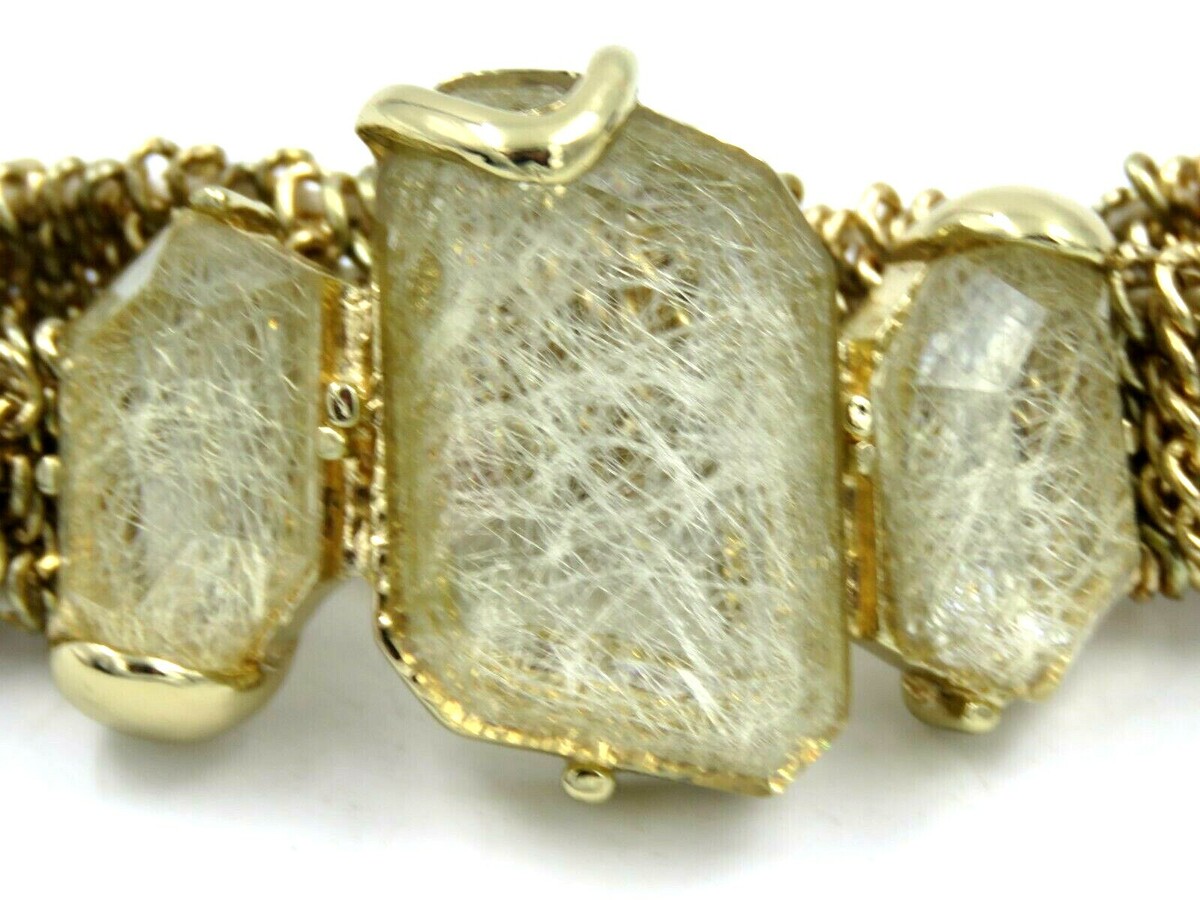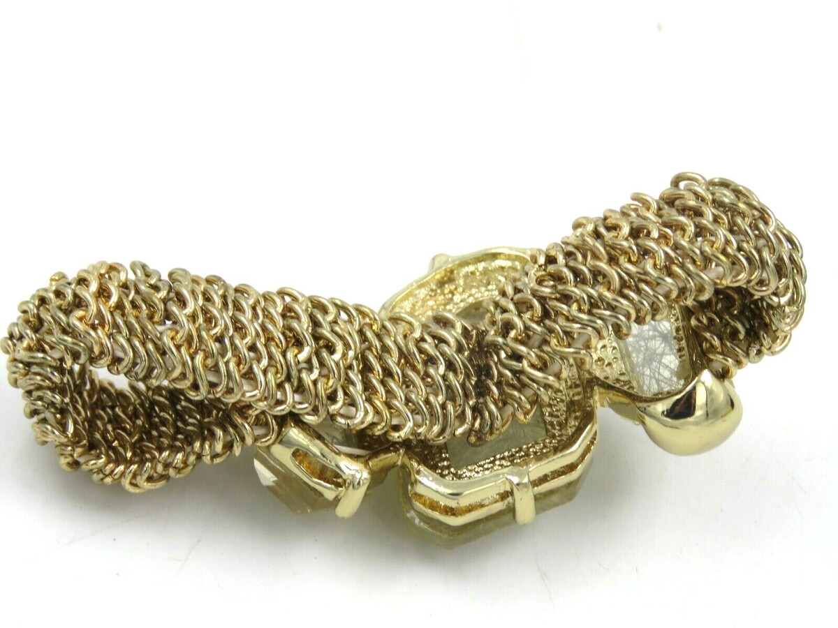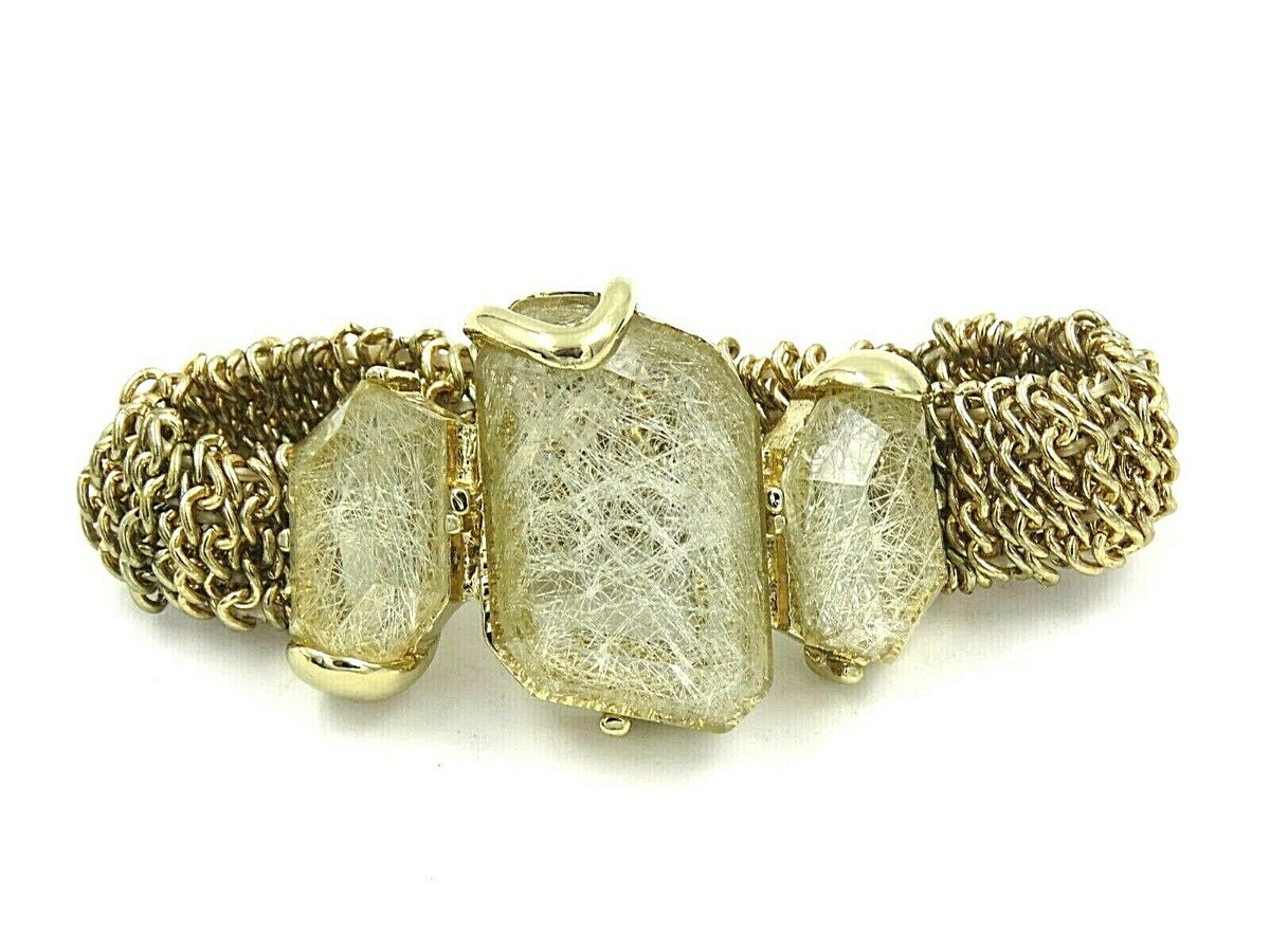 - Vintage Gold Tone Chain Stretch Bracelet with Faux Opaque White Gems